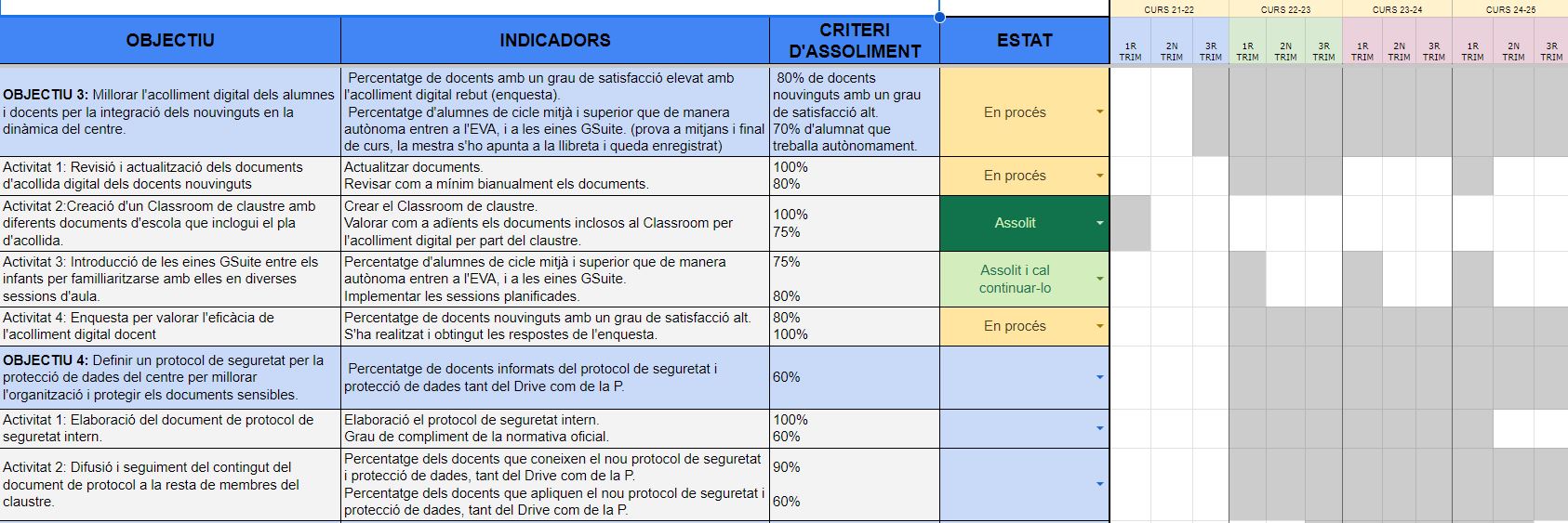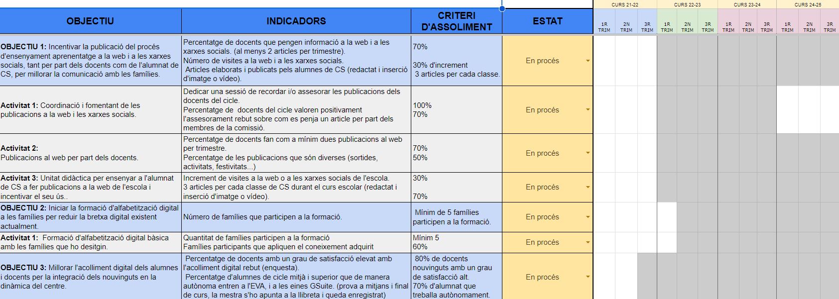 Objectius. En procés