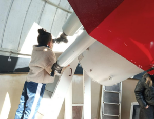 El sostre de la cúpula es va obrir i vam apuntar amb el telescopi cap al Sol. Ens va encantar!
