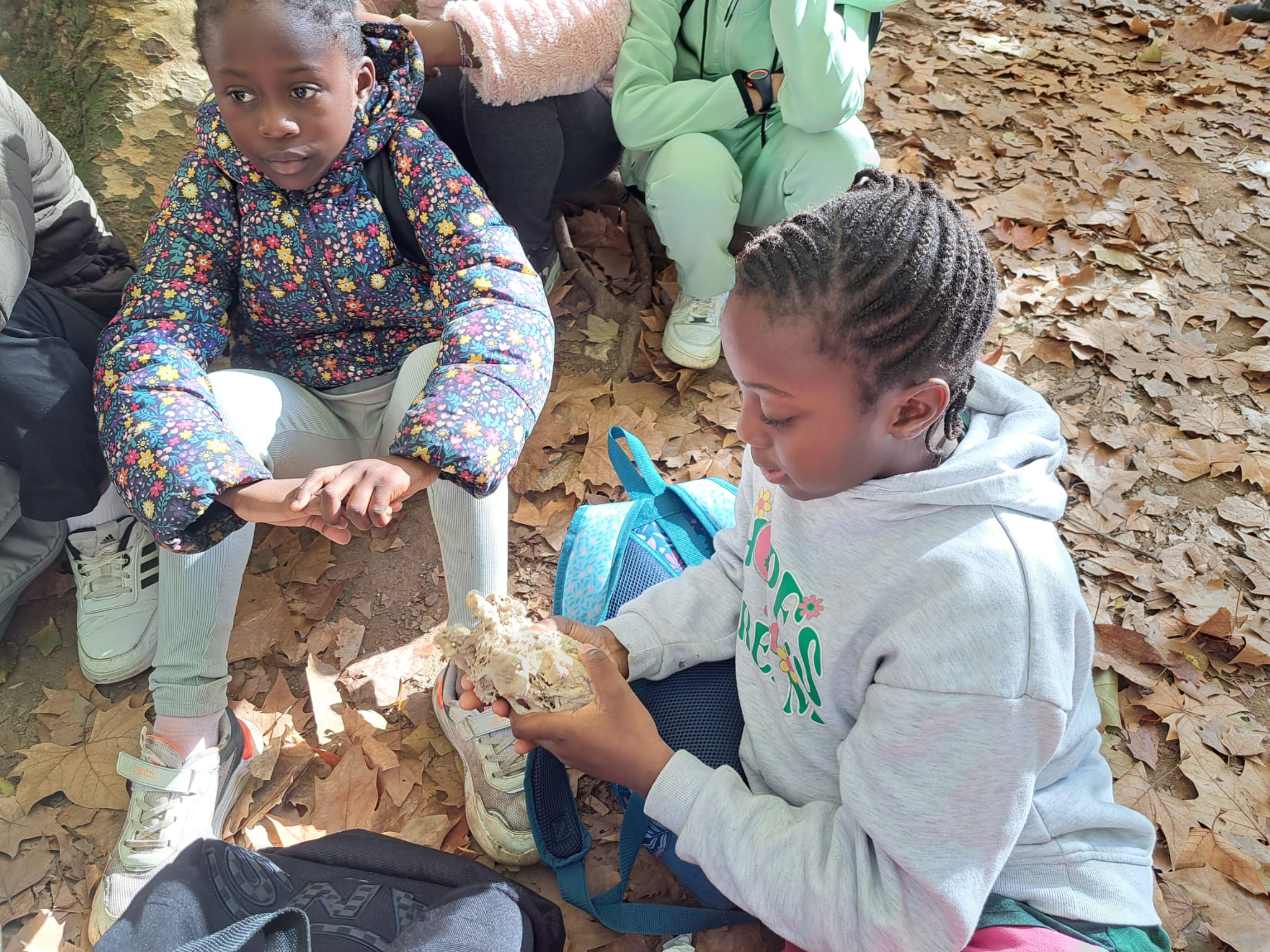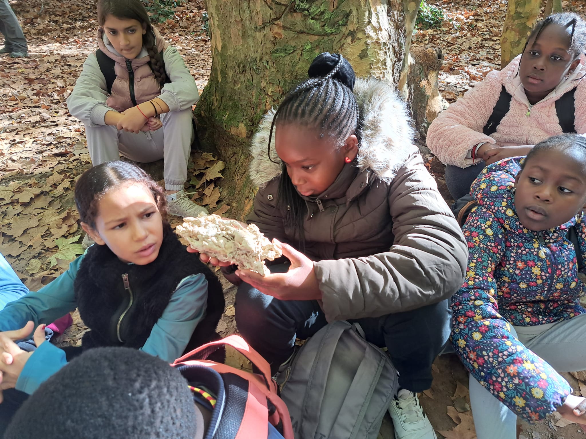 Durant el recorregut ens van explicar moltes coses sobre els porcs senglars i altres animalons que viuen allà, vam veure molts tipus de plantes, arbres i arbustos, vam saber com es va construir la mina d’aigua de Can Garriga, el procés de formació de la pedra tosca, els desviaments del curs natural de rius i rieres (roca Foradada) i vam poder jugar una bona estona amb elements naturals. Ens ho vam passar molt i molt bé!