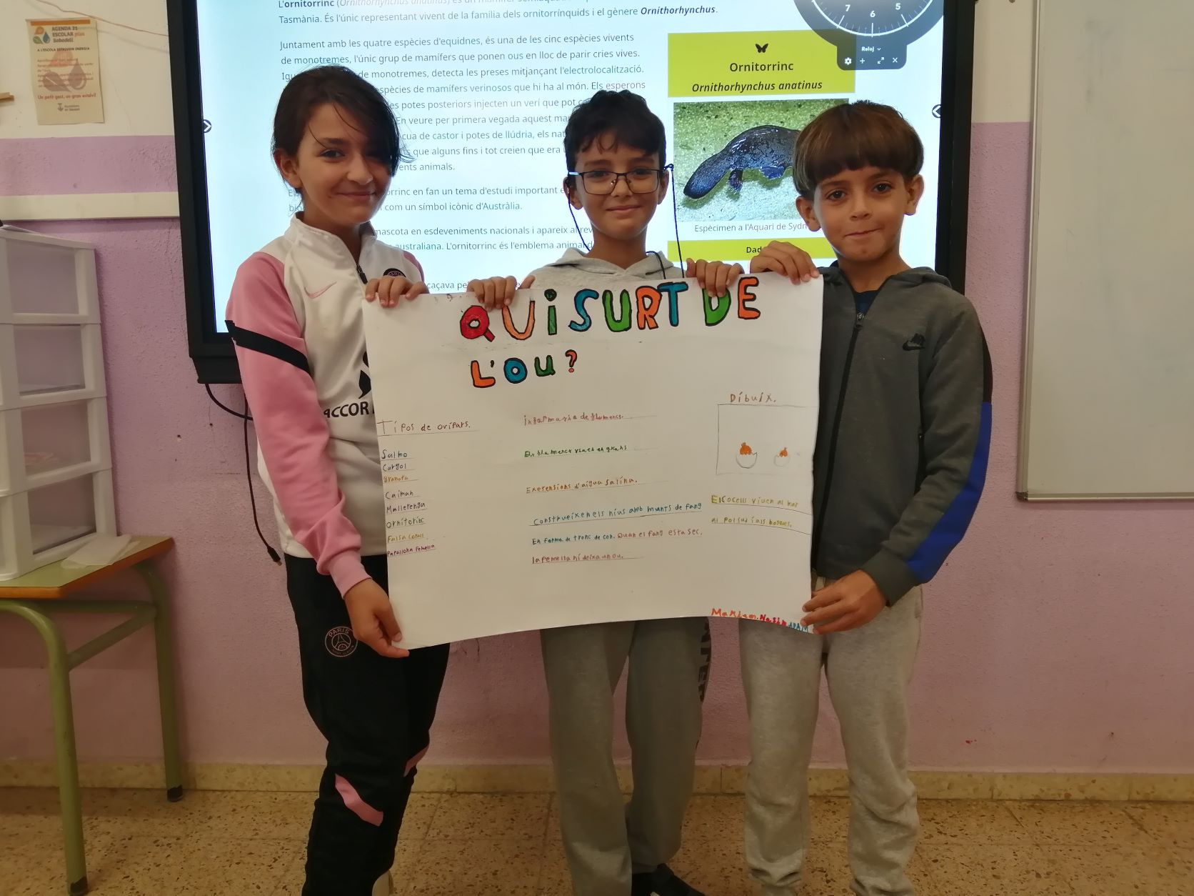 Els nens i nenes de 4t estem treballant, a medi, els diferents tipus de reproducció que existeixen. A classe, vam estar parlant dels animals vivípars i dels ovípars. Llavors, vam descobrir que també hi havien els animals ovovivípars… així que, abans d’explicar-ho, la Talía ens va dir que podíem investigar pel nostre compte i compartir-ho a classe… i aquestes han sigut les investigacions que han fet algunes de les nostres companyes!