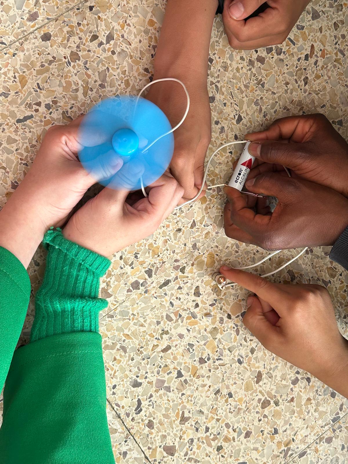 En petits grups han anat experimentant fins a aconseguir que el seu circuit funcionés i la bombeta fes llum o el ventilador girés.