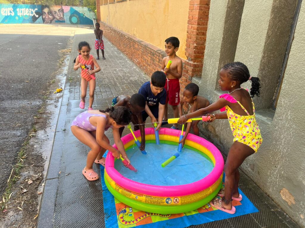 Per fi ha arribat el dia que més esperaven els nens i les nenes! Amb aquesta calor que fa fondre les pedres, hem sortit al pati carregats i carregades de piscina inflable, mànega, joguines d’aigua… i les rialles ressonaven a cada racó! Han passat el matí saltant, esquitxant-se i refrescant-se sense parar: cabells xops, ulls brillants i somriures gegants, la millor prova que ha estat un matí ben bonic on els infants ho han passat d’allò més bé!
