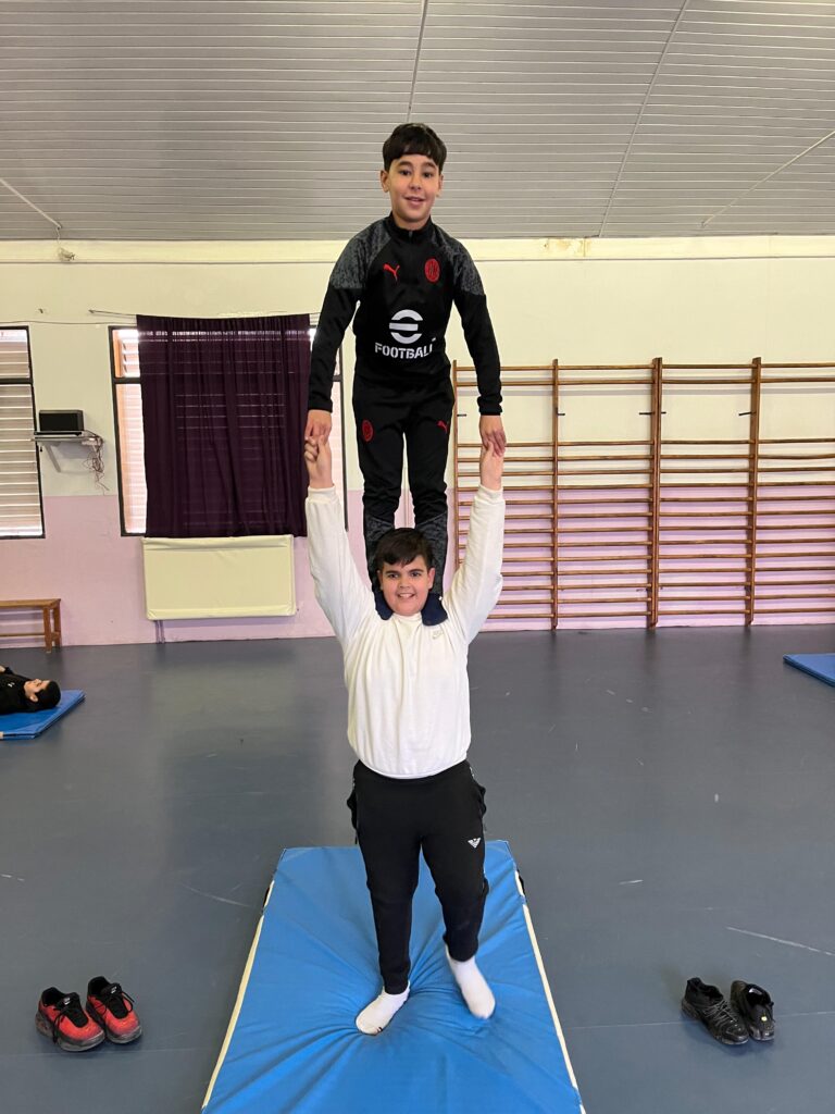 L’acrosport és una activitat acrobàtica que consisteix a formar figures humanes a terra. Els alumnes de sisè ens mostren algunes de les figures que han portat a terme durant les sessions d’Educació Física. Gràcies a aquesta proposta han pogut treballar elements de força, flexibilitat i equilibri.