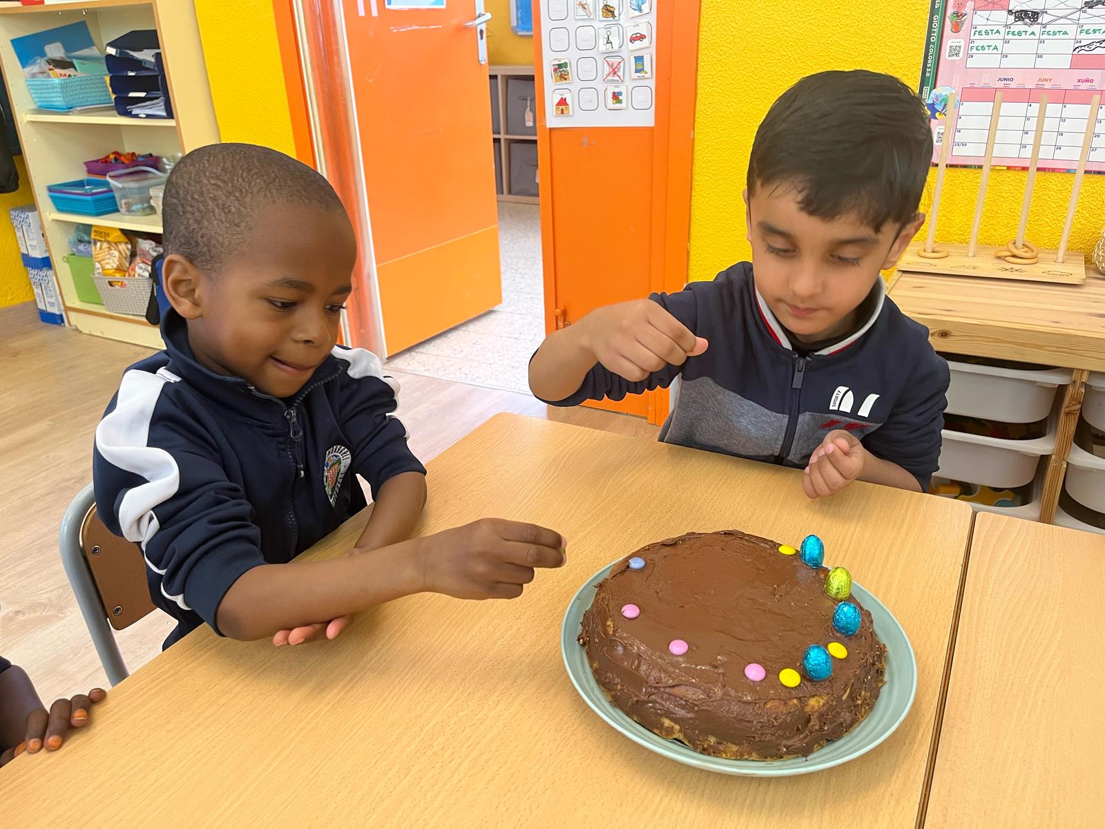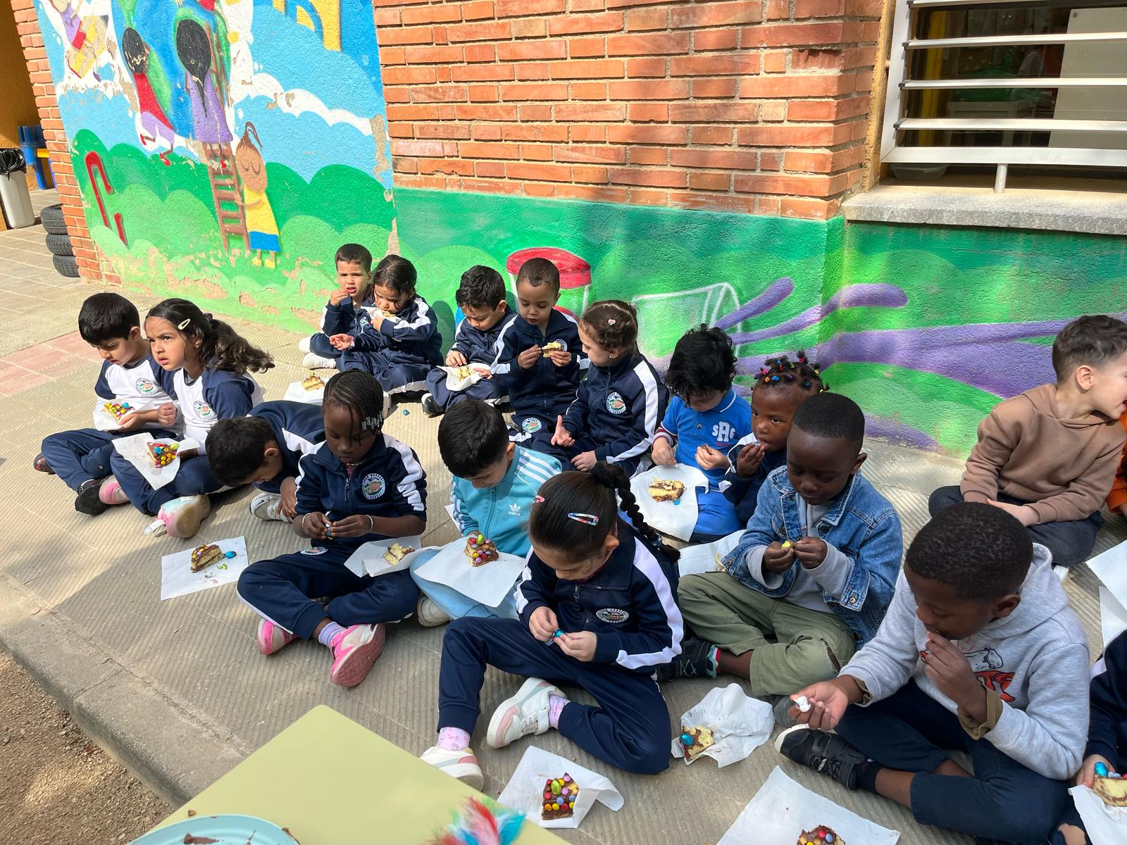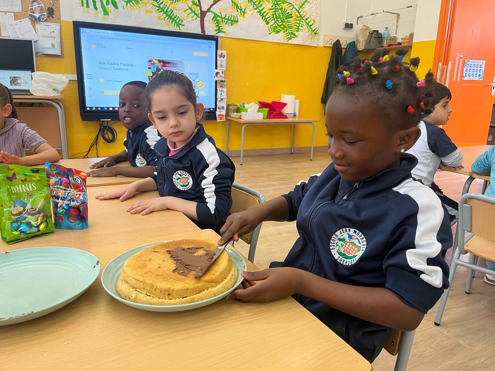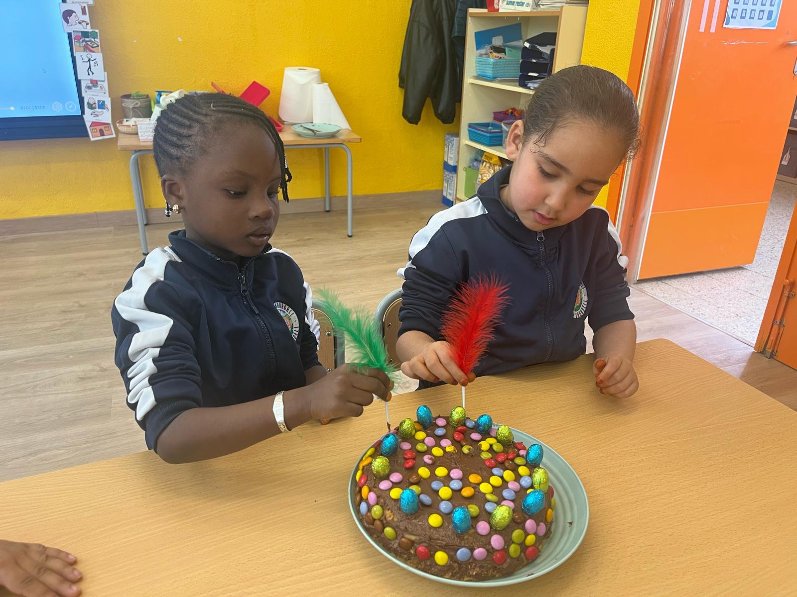 Avui hem fet la nostra mona i ens ha quedat genial, ben maca i deliciosa! Com ja és sabut per tothom, als infants els agrada moltíssim la xocolata i quin millor moment per gaudir d’ella a l’escola que creant aquest pastís que anomenem mona. Hem fet servir una base de bescuit, l’hem tallada per la meitat, l’hem emplenada de xocolata i finalment l’hem decorat amb molts colors i plomes. Per a fer d’aquest dia més especial, hem compartit l’esmorzar amb la resta d’alumnes d’infantil. Ho hem passat d’allò més bé!