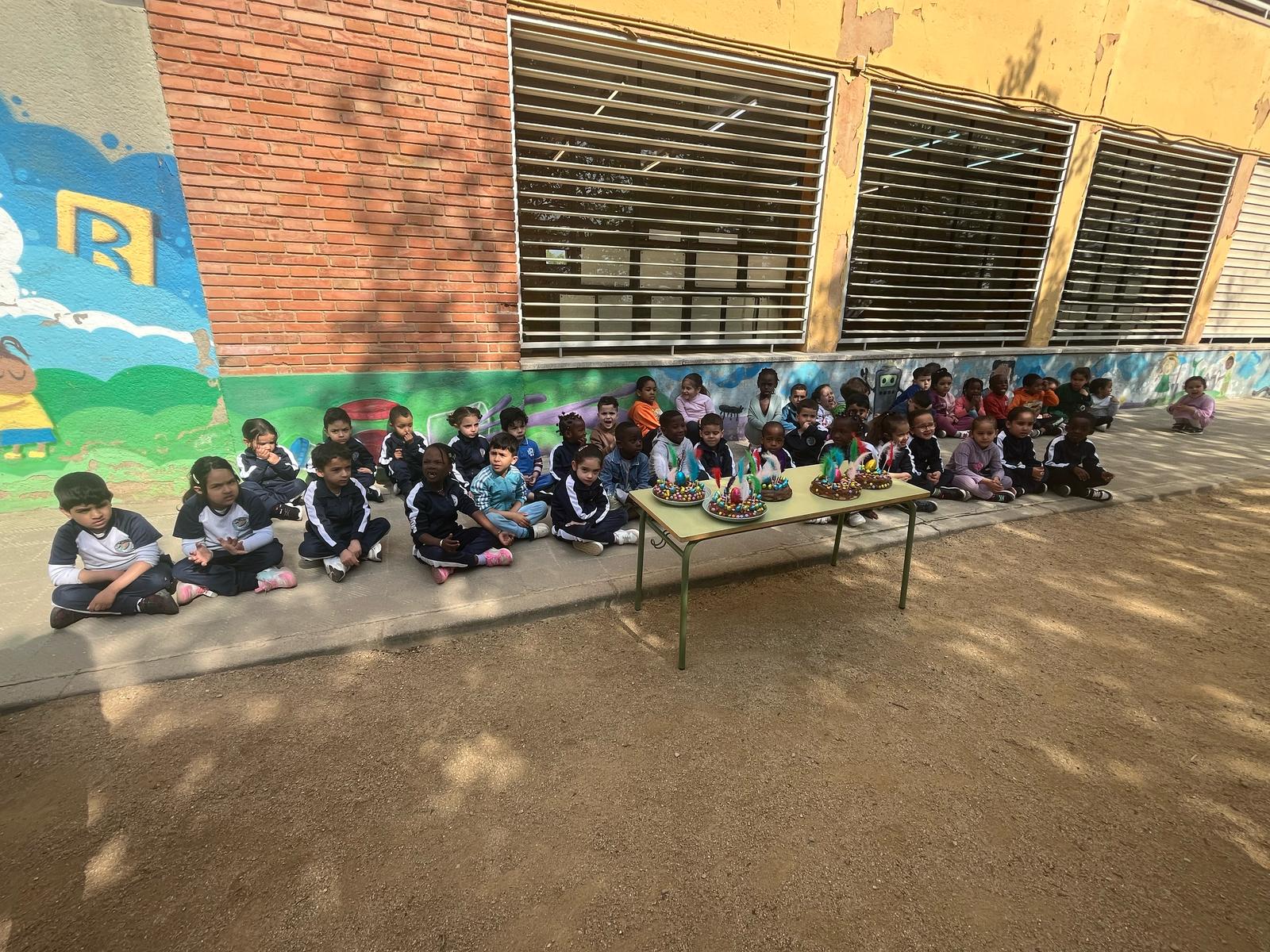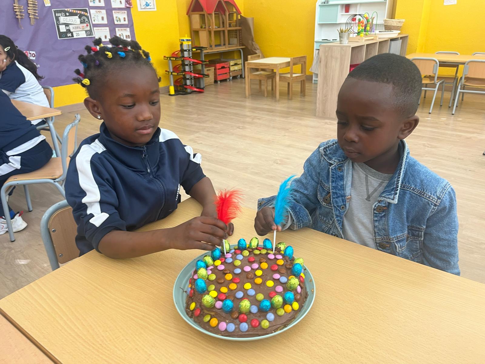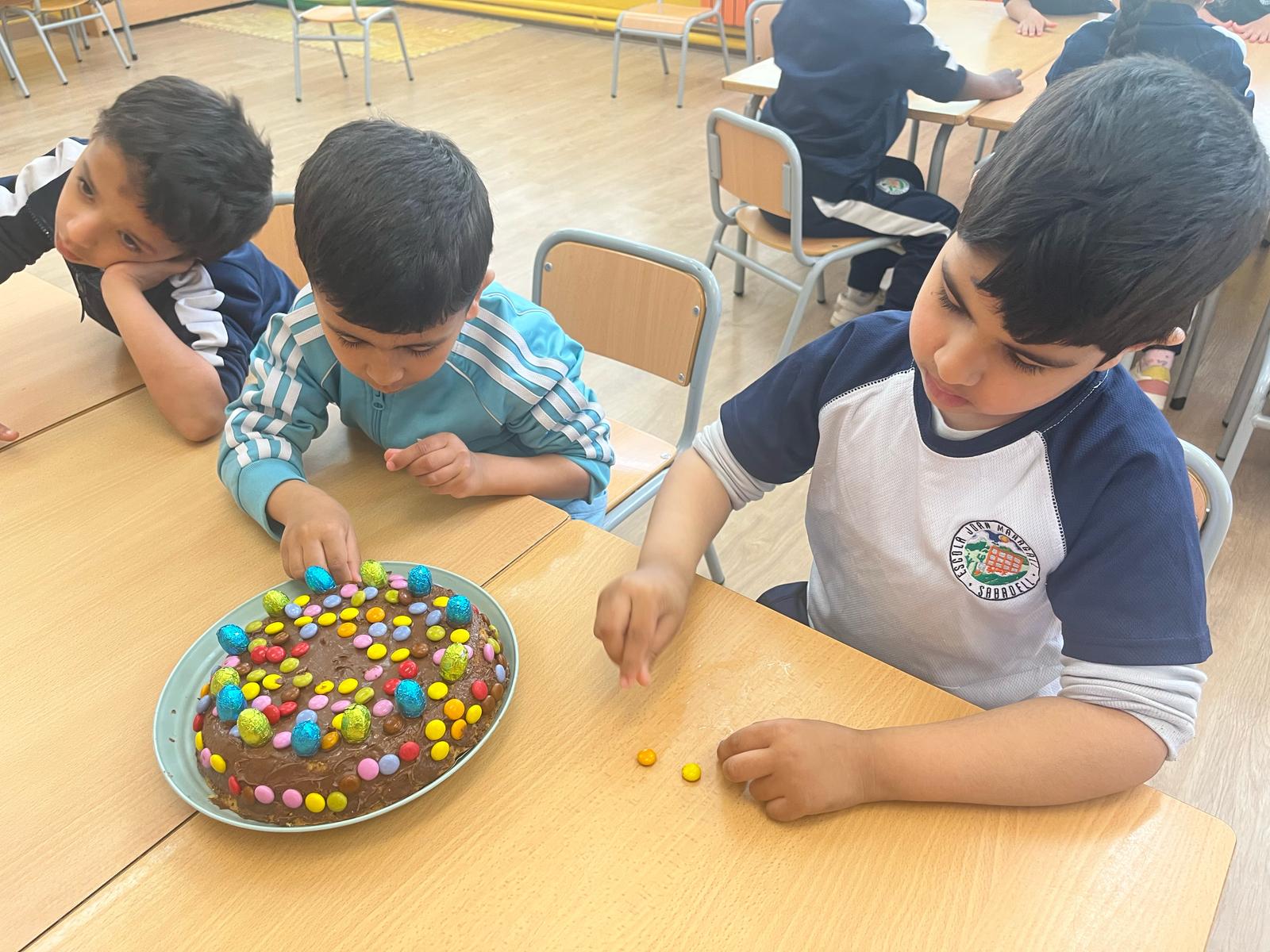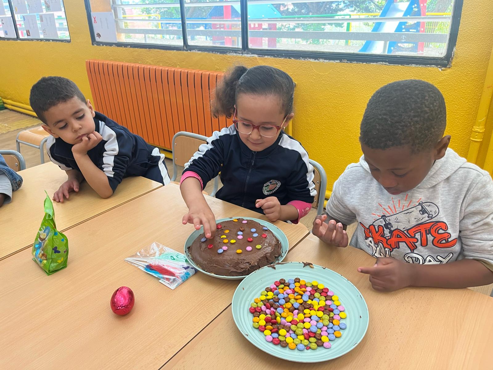 Avui hem fet la nostra mona i ens ha quedat genial, ben maca i deliciosa! Com ja és sabut per tothom, als infants els agrada moltíssim la xocolata i quin millor moment per gaudir d’ella a l’escola que creant aquest pastís que anomenem mona. Hem fet servir una base de bescuit, l’hem tallada per la meitat, l’hem emplenada de xocolata i finalment l’hem decorat amb molts colors i plomes. Per a fer d’aquest dia més especial, hem compartit l’esmorzar amb la resta d’alumnes d’infantil. Ho hem passat d’allò més bé!