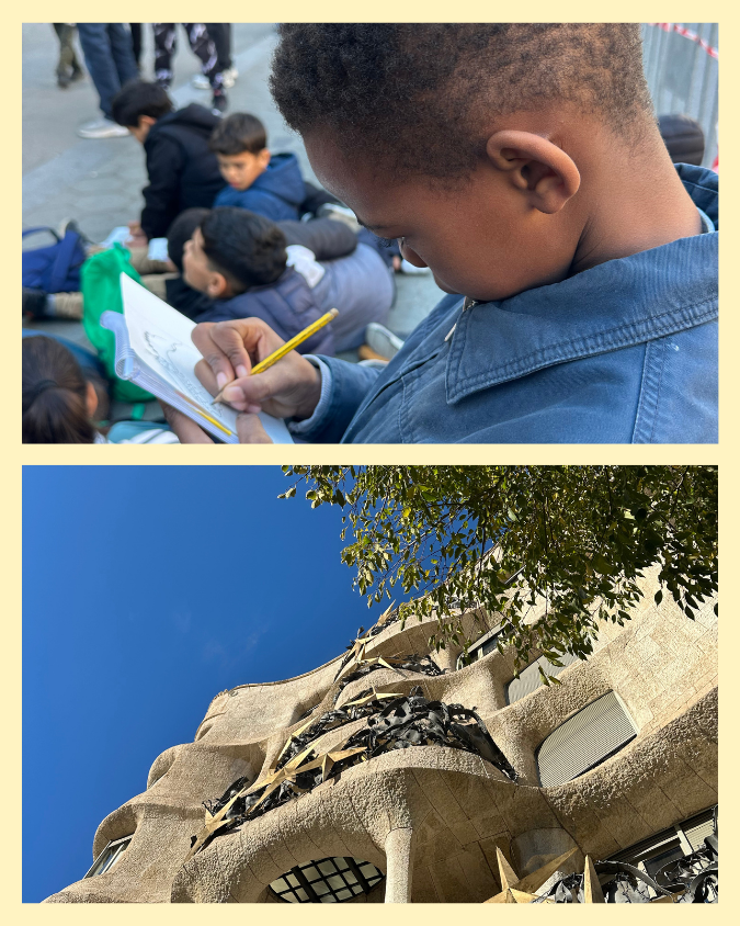 Després vam anar a la Pedrera i a la Casa Batlló, dos dels edificis més famosos de Gaudí. Vam aprofitar per fer dibuixos al natural de les seves formes tan úniques. A més, aquest any és l’Any Gaudí, així que va ser una bona oportunitat per conèixer millor la seva obra!
