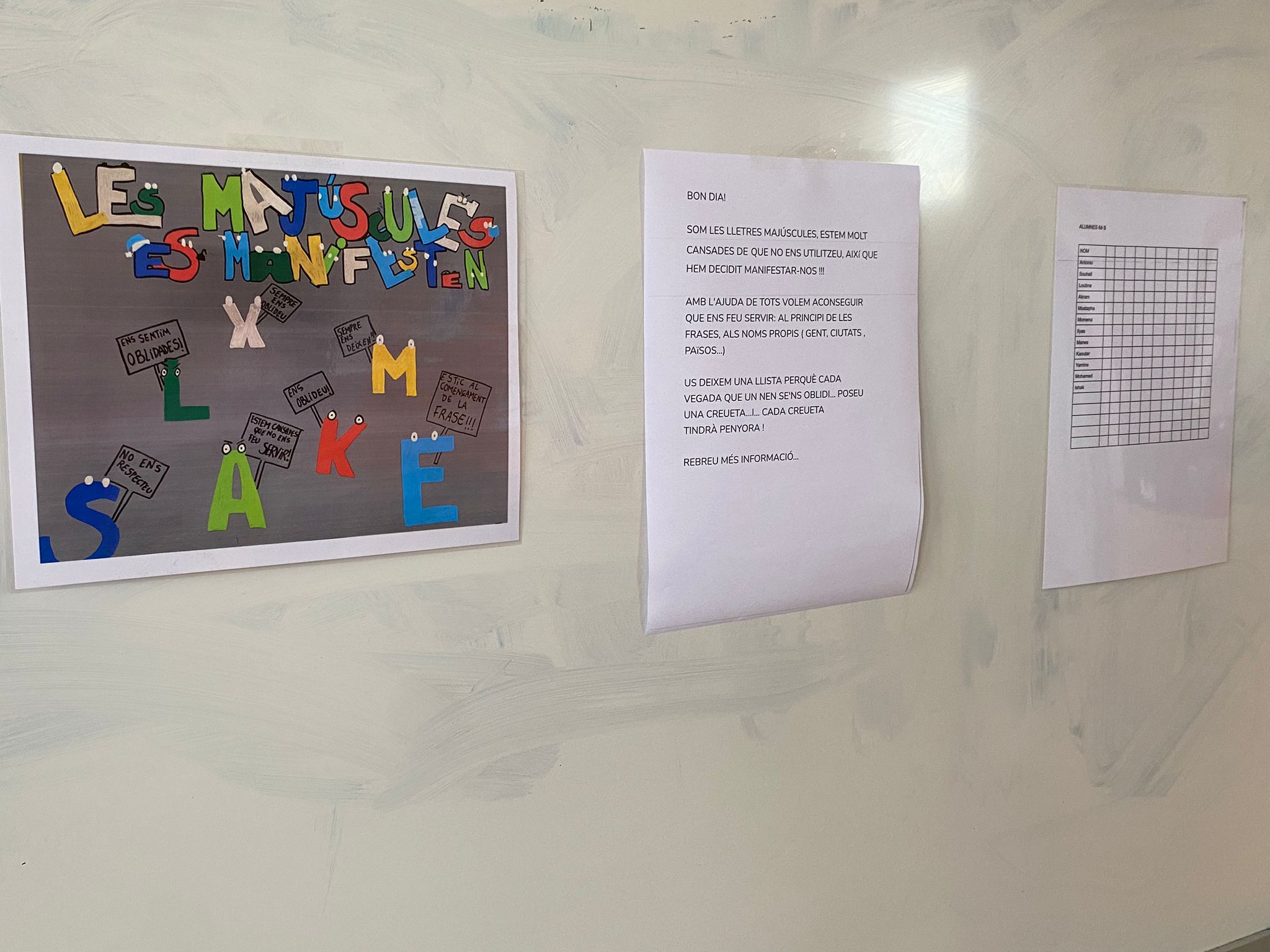 Els alumnes de cicle superior s’han trobat un missatge a les seves aules….eren les majúscules que estan una mica tristes i enfadades perquè, sovint, els alumnes no se’n recorden de posar-les!!