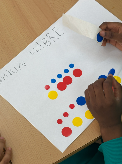 Un dies després aprofitant un dia de molta pluja, van crear les seves pròpies pàgines del llibre amb gomets de colors. Vam acabar cantant i representant les creacions tots plegats!
