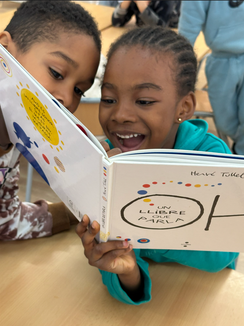 Les nenes i nens d’I5 aquest trimestre a música van descobrir “Oh! Un llibre que parla!”. Un conte molt especial amb el que hem pogut treballar moltes de les qualitat musicals: fort-fluix, ràpid-lent, agut-greu… Tot això, mentre jugàvem i ens ho passàvem d’allò més bé.
