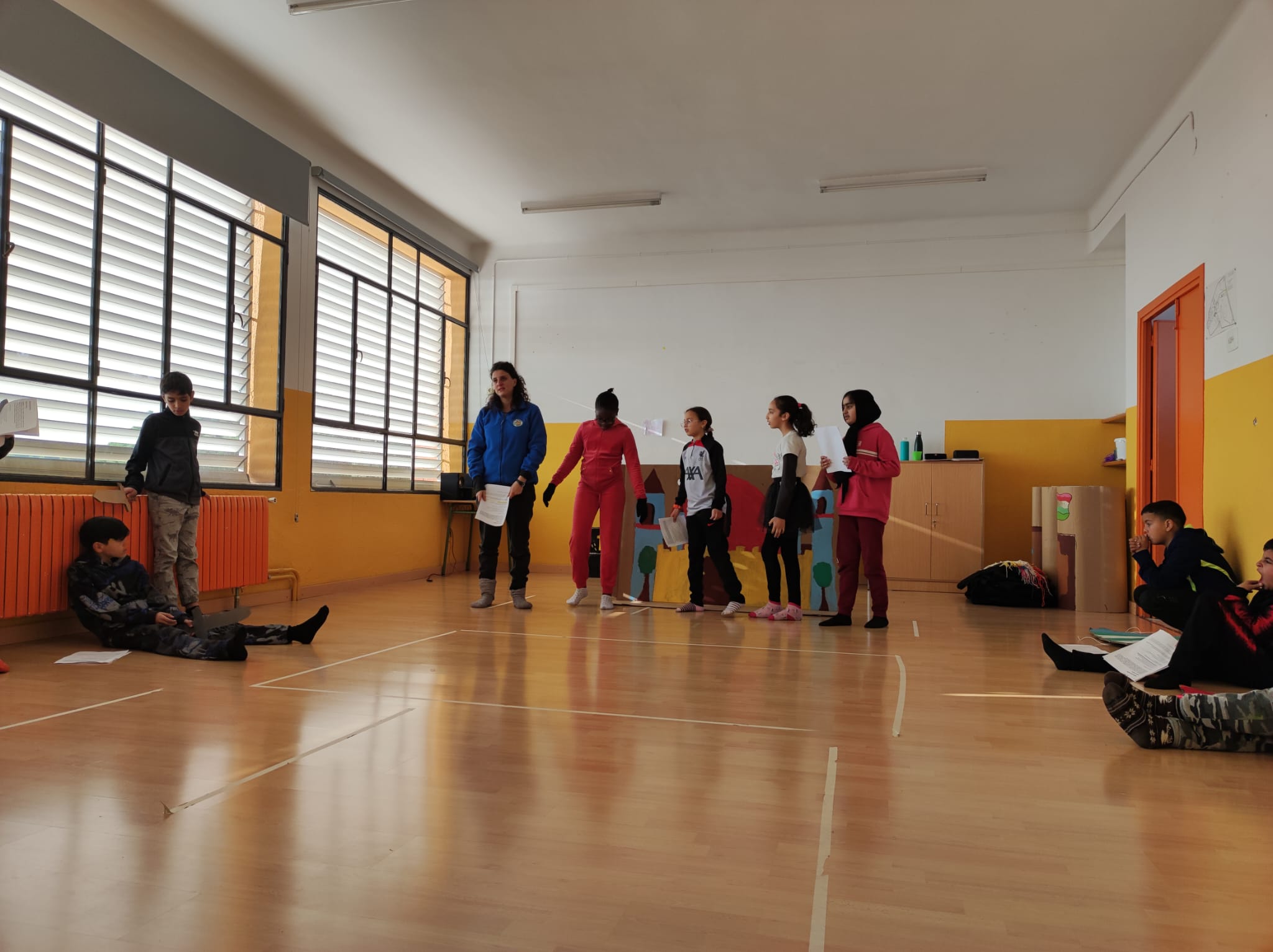 Hem pensat i escrit el diàleg de l’obra i estem gaudint estudiant i assajant l’obra. La Mariana, la nostra artista Mus-E ens ajuda molt a tenir confiança, a creure en nosaltres mateixos i a projectar la nostra veu.