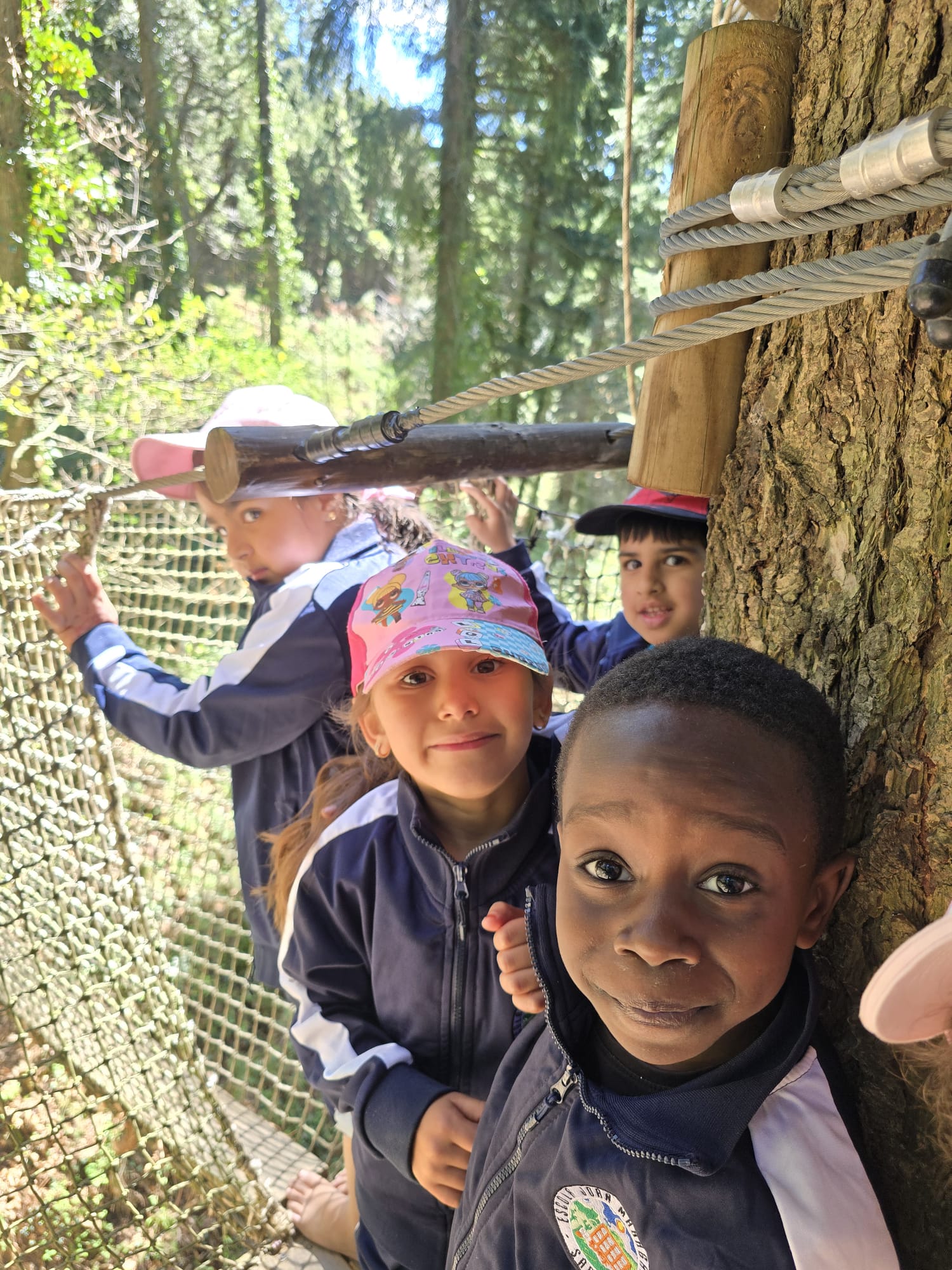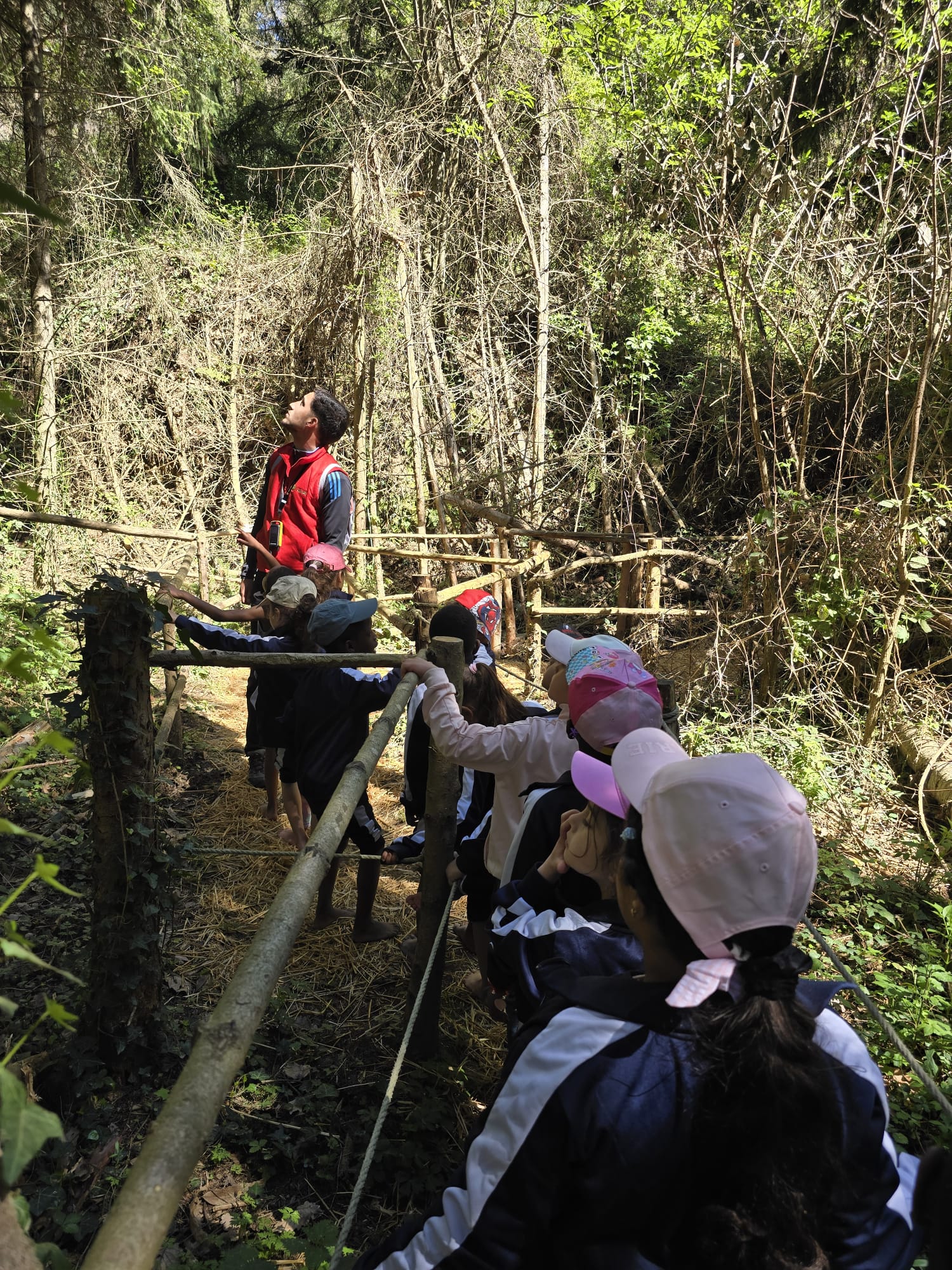 El dimarts 14 d’abril, els infants de 1r van viatjar amb autocar fins a la Selva de l’Aventura. Allà van fer una activitat anomenada “Camina descalç” que, com bé el nom indica, constava en fer un recorregut descalç pel mig del bosc i, durant el qual, van anar activant 4 dels 5 sentits del nostre cos (tacte, olfacte, oïda i vista).