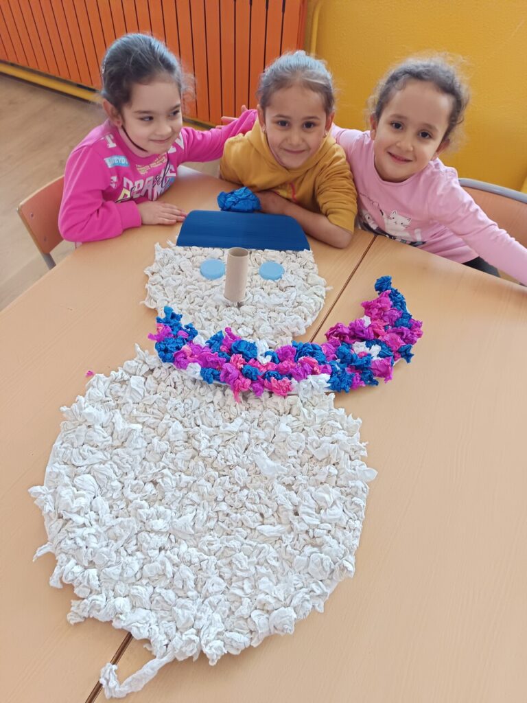DECORACIÓ D’HIVERN Lucia G.11/02/25 Hem tret les fulles seques de l’arbre del passadís i li hem posat neu perquè ja fa molt fred. També hem fet un bonic ninot de neu per posar al costat de l’arbre.