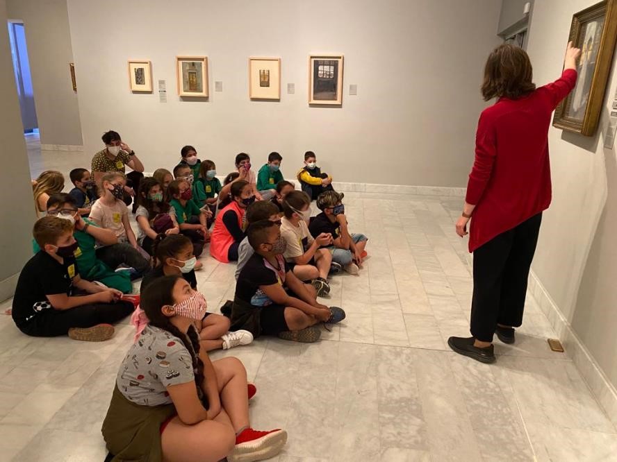 Vam realitzar una visita al Museu on vam viure una experiència educativa en què els interessos dels nens i nenes se situen al centre de la visita, tot creant així un debat davant de l’obra, conduït per mitjà de la metodologia d’Estratègies de Pensament Visual (VTS, en les sigles de la veu anglesa). Al Museu vam veure algunes obres que ja havíem reballat a la classe, ens va agradar molt. Després, vam fer un taller on vam crear la nostra pròpia obra d’art.