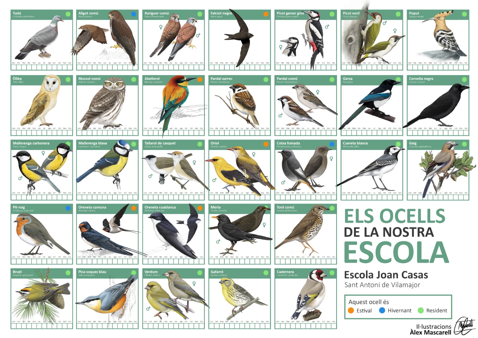 Per aquells i aquelles que veieu la natura amb ulls d’aligot, per aquells i aquelles que mireu el cel i l’escrutineu tot escoltant el cant dels ocells que volen pels voltants de l’escola i per tots aquells i aquelles que demostreu dots d’observació, aquí teniu un cartell confeccionat pel gran i estimat Àlex Mascarell, il·lustrador senior de flora i fauna pròpia de Catalunya que ens ha regalat aquest tresor.