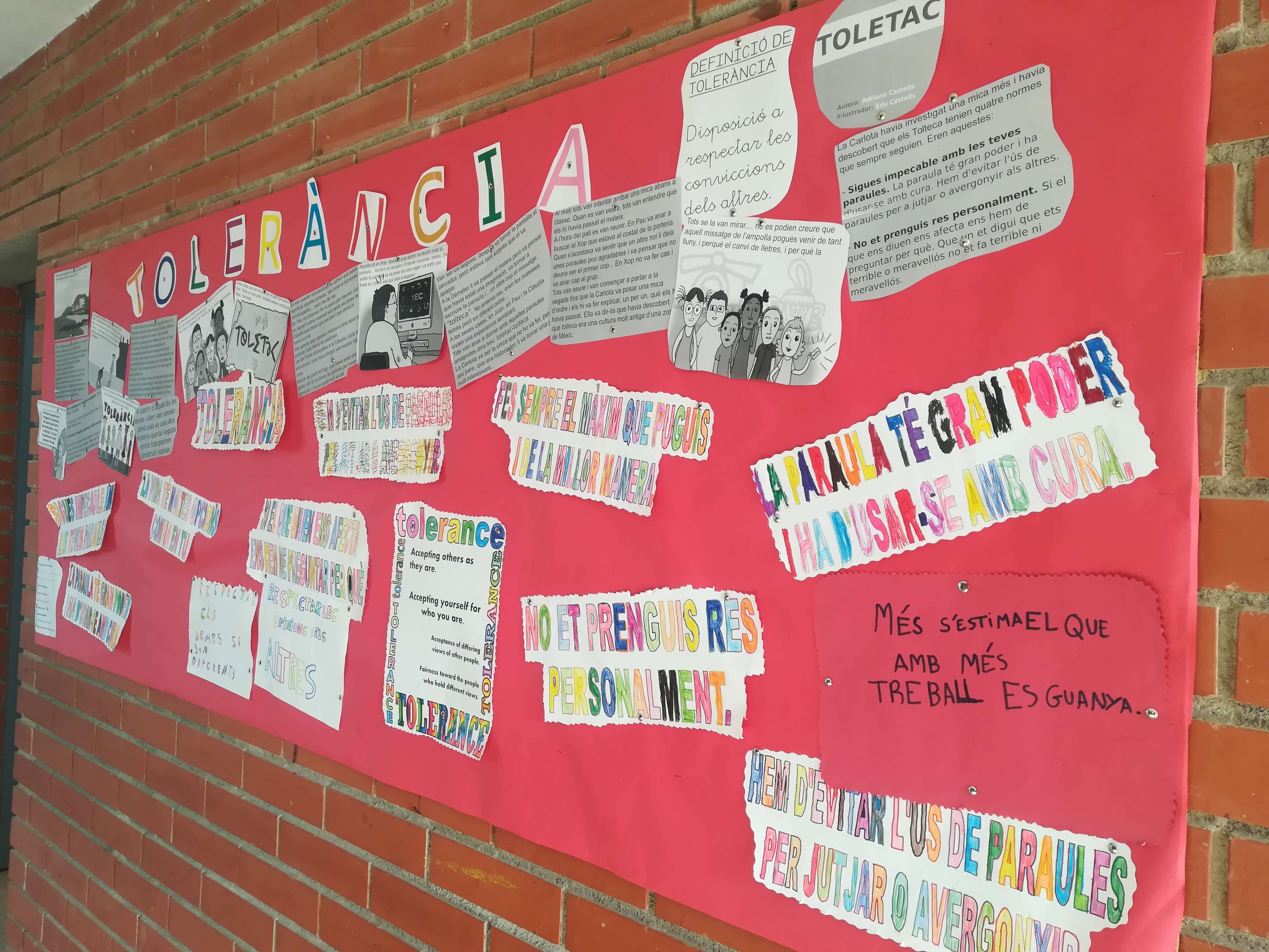 Divendres dia 16 de novembre va ser el dia de la TOLERÀNCIA. Aquest any és el nostre valor estrella .Des de la comunitat de mitjans ho treballem diàriament, però aquest dia en especial ho hem fet a partir d’un conte. El TOLETAC. Ens ensenya l’orígen i significat de la paraula. Entre tots i totes hem construit un mural.