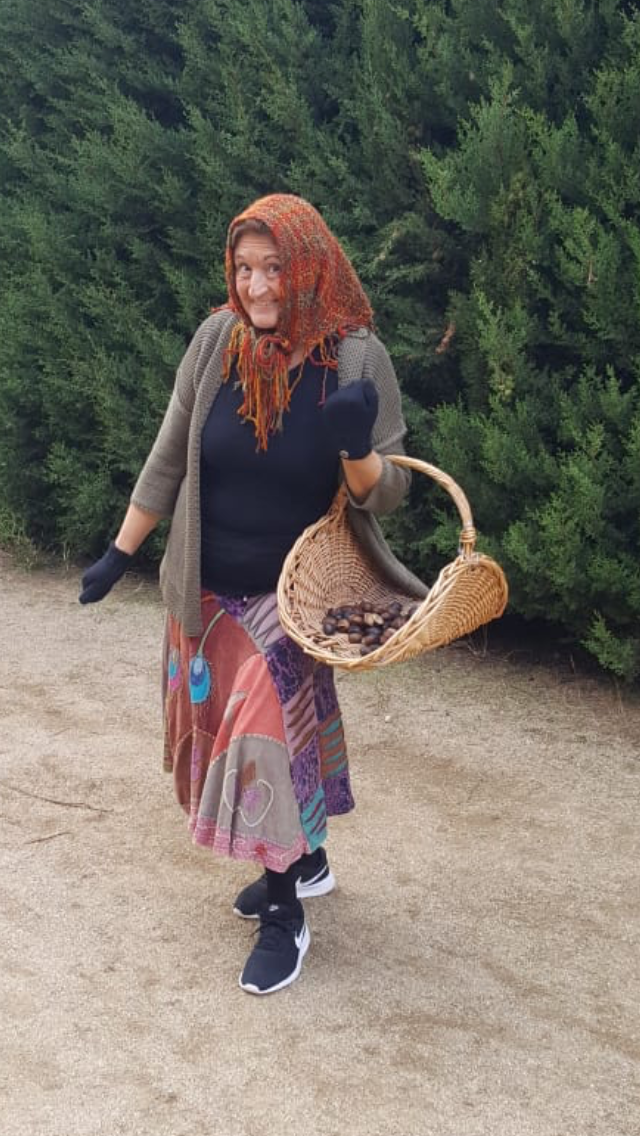Ens explica, que aquest curs 2019, les podem torrar al foc de branques i branquillots que pares, mares i la nostra estimada Xus ens han fet arribar per cremar al pati de l’escola. (Vam fem un bon equip, veureu, el Ferran va preparar un foc amb l’extintor a mà i mestres de l’escola vam fer caliu). Diu la castanyera que s’ha comprat unes ulleres noves, prop d’aquí a la Roca del Vallès i que gràcies a l’òptica, porta un cistell carregat de castanyes que no de cargols com el curs passat. La pluja va fer que els cargols marxessin del cistell així que va venir ‘buit que no vuit’. Recorda que ens vam ensortir gràcies a un pare de l’AFA que ens les va torrar al forn. Estaven boníssimes i sense cucs, gràcies famílies!