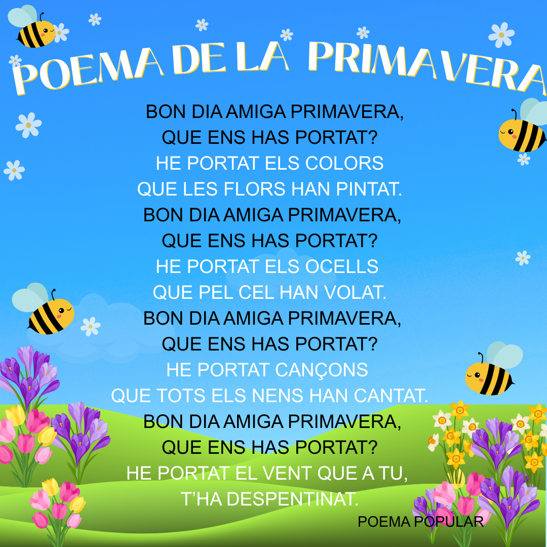 Tot seguit adjuntem els guanyadors/es del sorteig i també els poemes de primavera per si des de casa voleu incentivar els vostres fills i/o filles a aprendre’ls i a participar en un nou sorteig.