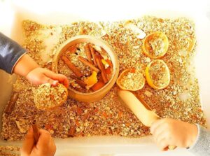 L’espai d’experimentació pretén estimular la curiositat i aspectes sensorials dels infants mitjançant materials naturals i propostes com l’experimentació amb farina i cafè, en un clima de calma i calidesa, on els infants poden experimentar lliurement.