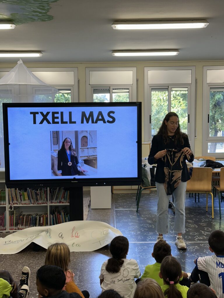 Avui ens ha visitat a l’escola la Txell Mas, membre de l’equip de natació sincronitzada de la delegació espanyola als Jocs Olímpics de París 2024. La Txell és campiona del món i medallista olímpica en aquests darrers JJOO 2024. Ha visitat la nostra escola, en concret la biblioteca, i ha estat una bona estona amb diferents grups. Hi havia molta expectació i molts nervis, fins i tot l’alcalde i diferents regidores i mitjans locals com VOTV no s’han volgut perdre l’esdeveniment i també eren a l’escola.