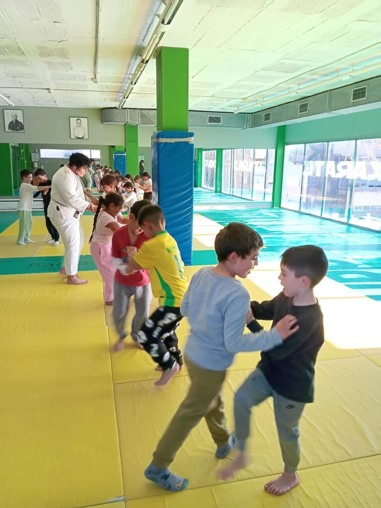 Hem treballat diferents coses de judo. Primer, hem après a saludar correctament dient “rei”, com a mostra de respecte. Després, hem practicat el kumi-kata, que és la manera d’agafar el company per poder-lo controlar millor. També hem treballat les dues parts principals del judo. D’una banda, el ne-waza, que és el treball a terra, on l’objectiu és immobilitzar el company. De l’altra, el tachi-waza, que és el treball dret, on hem practicat una tècnica que es diu o-soto-gari, que és un gran ganxo per fora.