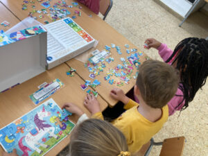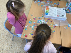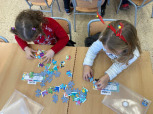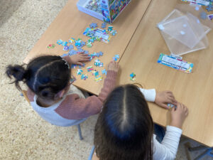 Els infants d’I5 al llarg del curs s’han endinsat en el món dels puzzles i trencaclosques, permetent que la vivència dels reptes que suposa siguin conquerits segons els seus ritmes. La varietat dels que disposem a l’escola ens permet adaptar-nos a les diversitats dels nostres infants, començant per puzzles de poquetes peces i incrementant el número en funció de les seves capacitats.