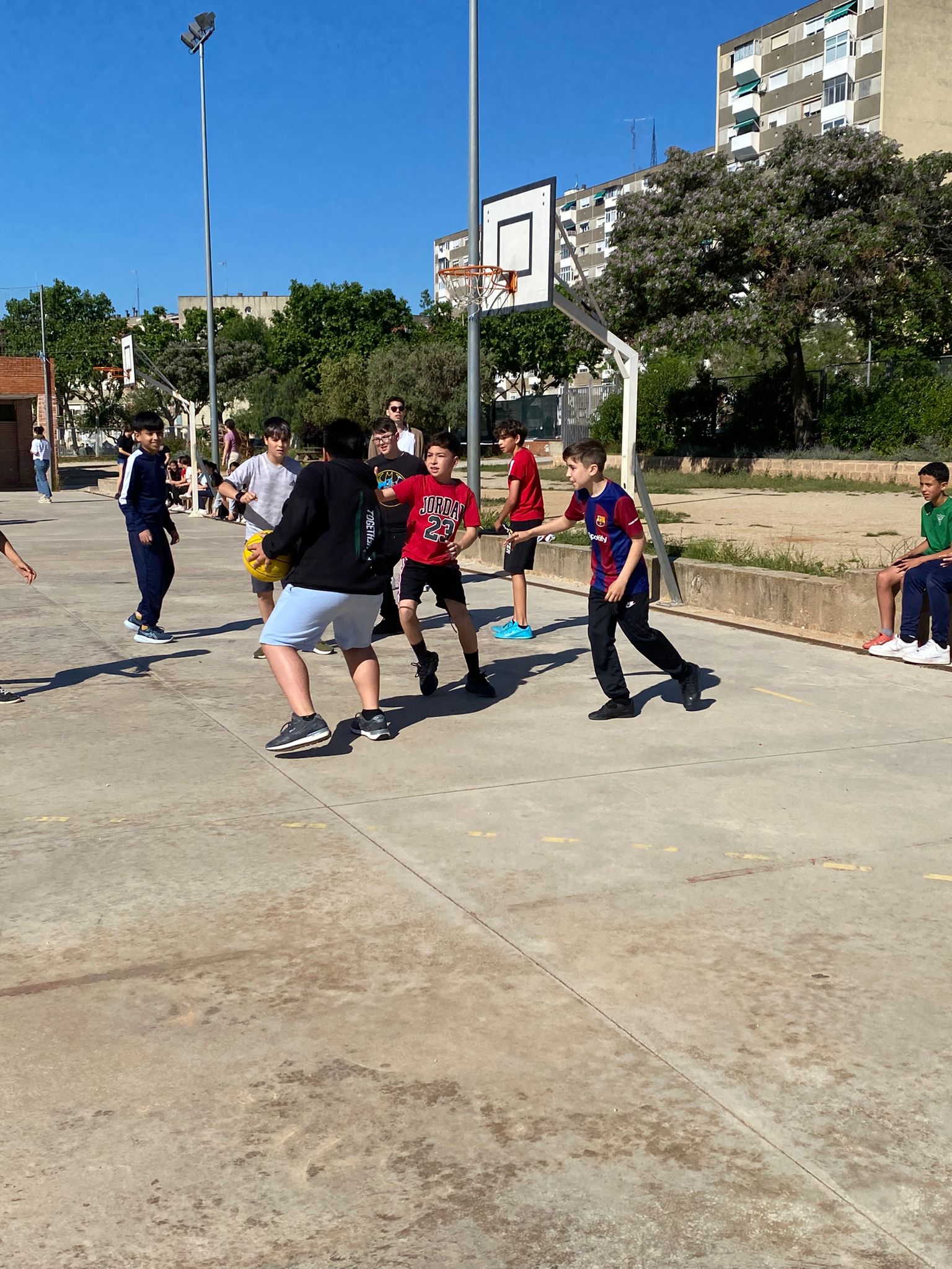 L’equip de monitors/es i jugadores ens van ensenyar conceptes bàsics del joc, vam practicar tècniques com el bot, la passada i el tir, i vam fer petits jocs per posar en pràctica el que havíem après. Va ser una manera molt engrescadora de descobrir aquest esport i fer un tastet del bàsquet d’una manera divertida i educativa!!!