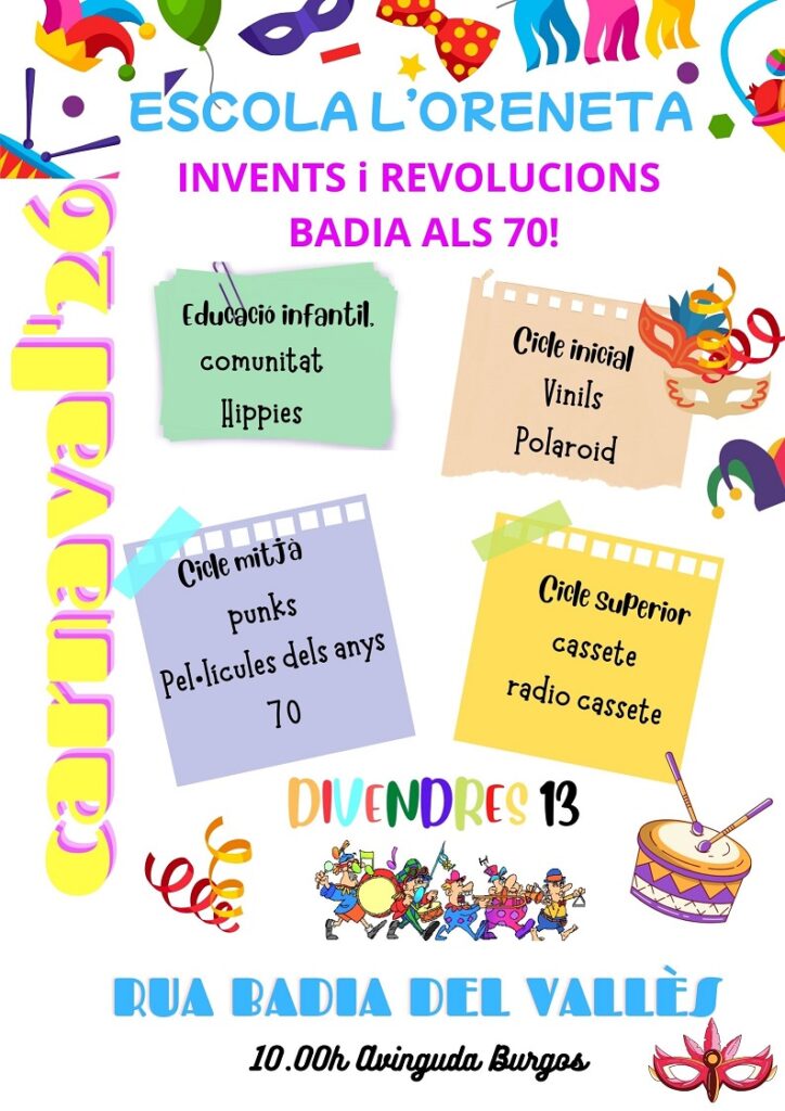 Divendres 13 farem la RUA de Carnaval  a partir de les 10h del matí.