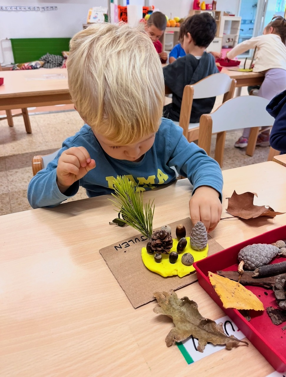 Benvolgudes famílies, els infants d’I3 han gaudit descobrint la tardor, plena de colors càlids com el vermell, taronja, groc, verd i marró. Mitjançant jocs i activitats amb fulles, branques i pinyes, han creat petites obres d’art plenes de creativitat.