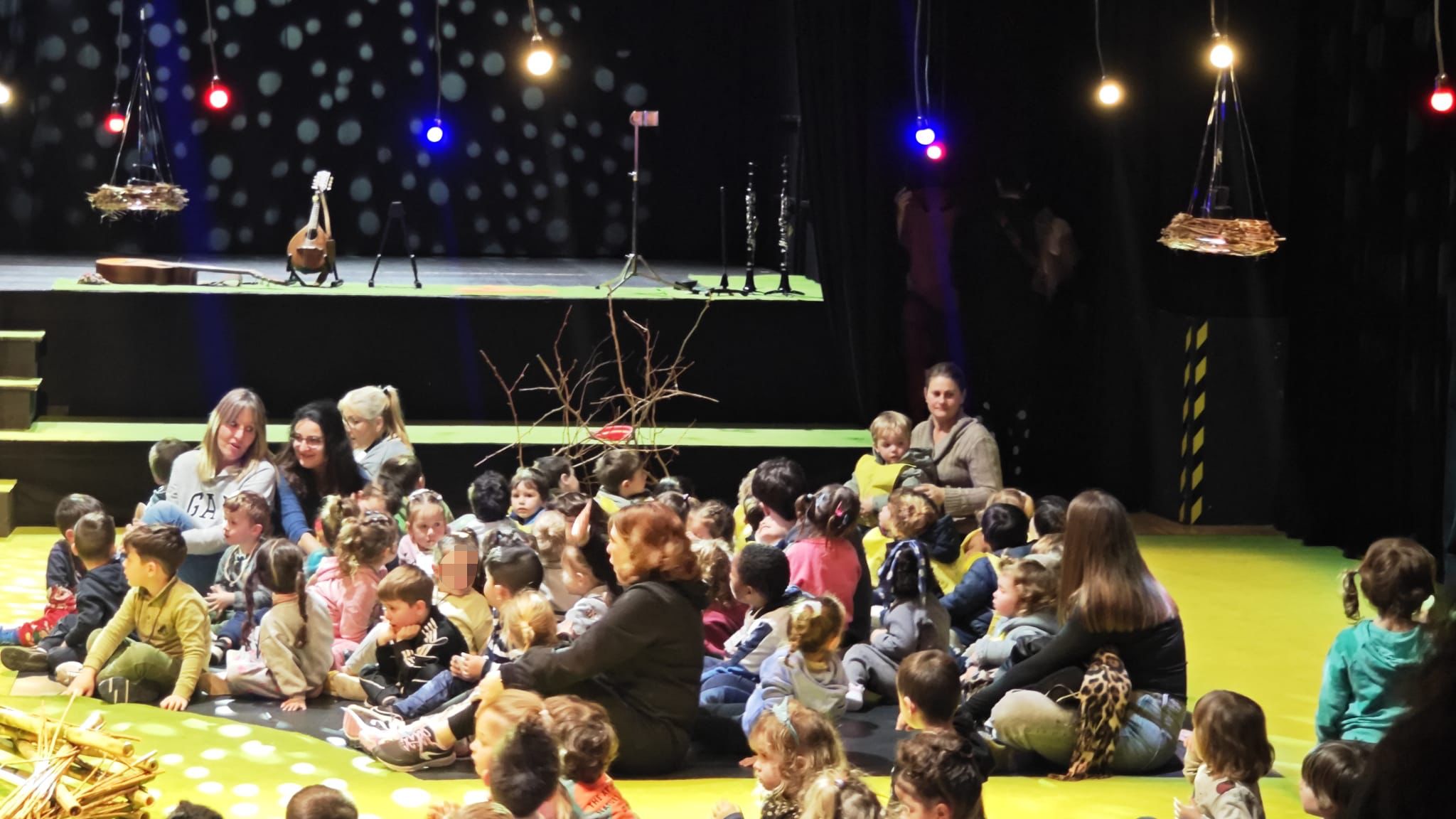 Durant l’espectacle no es podien fer enregistraments, però sí que us podem compartir imatges dels infants d’I3 preparats per començar tan fora l’auditori esperant l’hora d’entrada com un cop dins frisant perquè comenci l’espectacle!