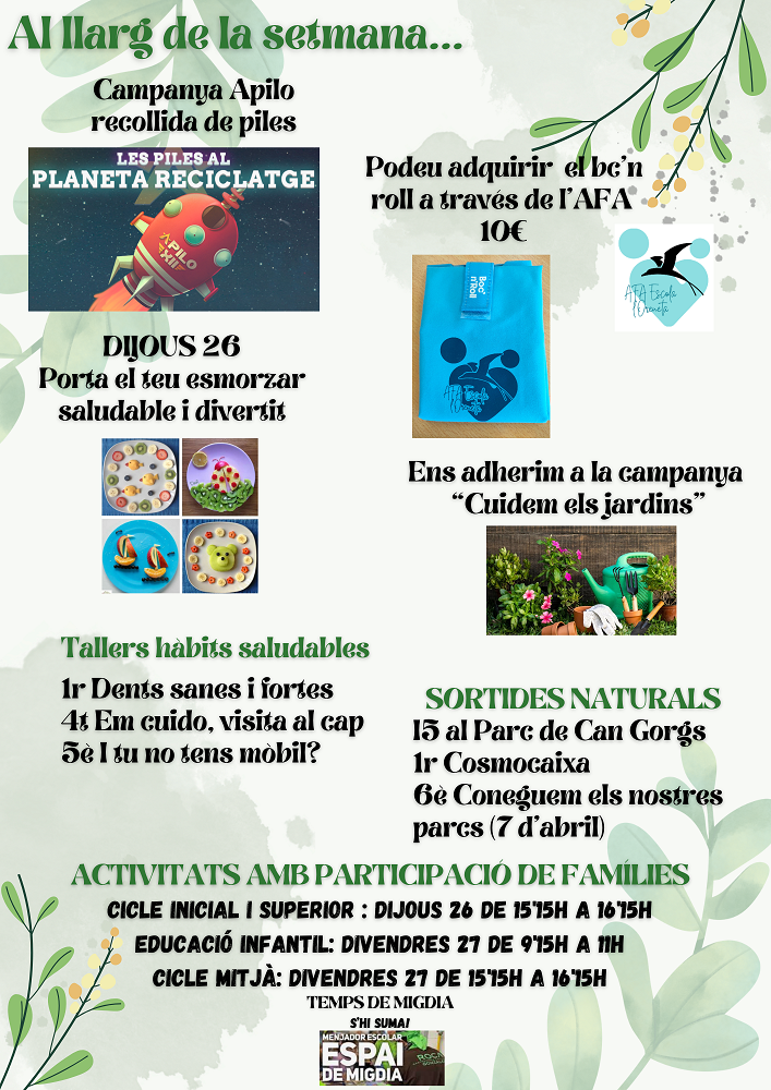 Us animem a venir a les diferents  activitats amb participació de famílies proposades pels equips docents!