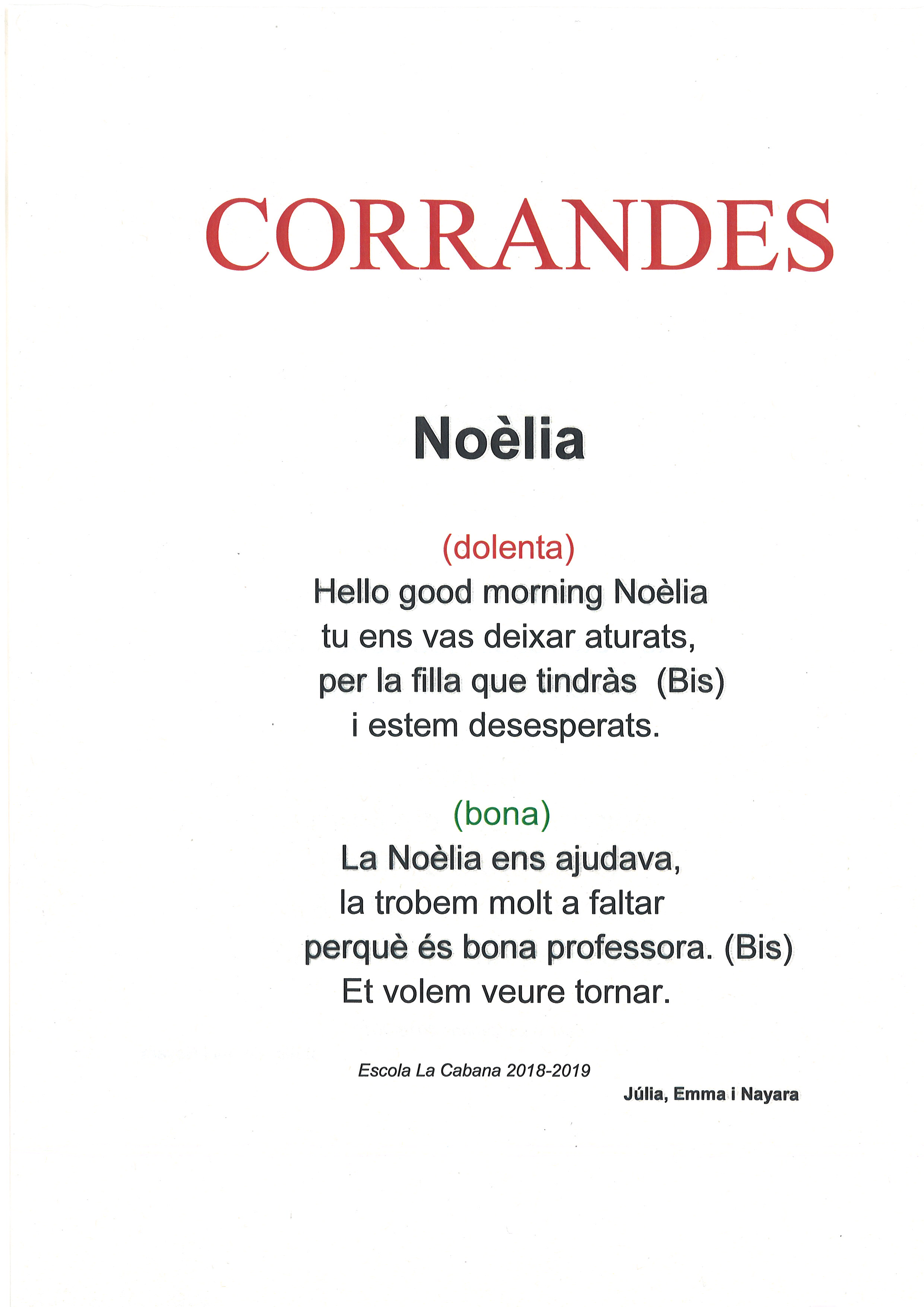 Aquest curs hem creat unes corrandes que, com tots sabreu, són cançons de tonada alegre, sovint improvisada i amb contingut satíric i crític.