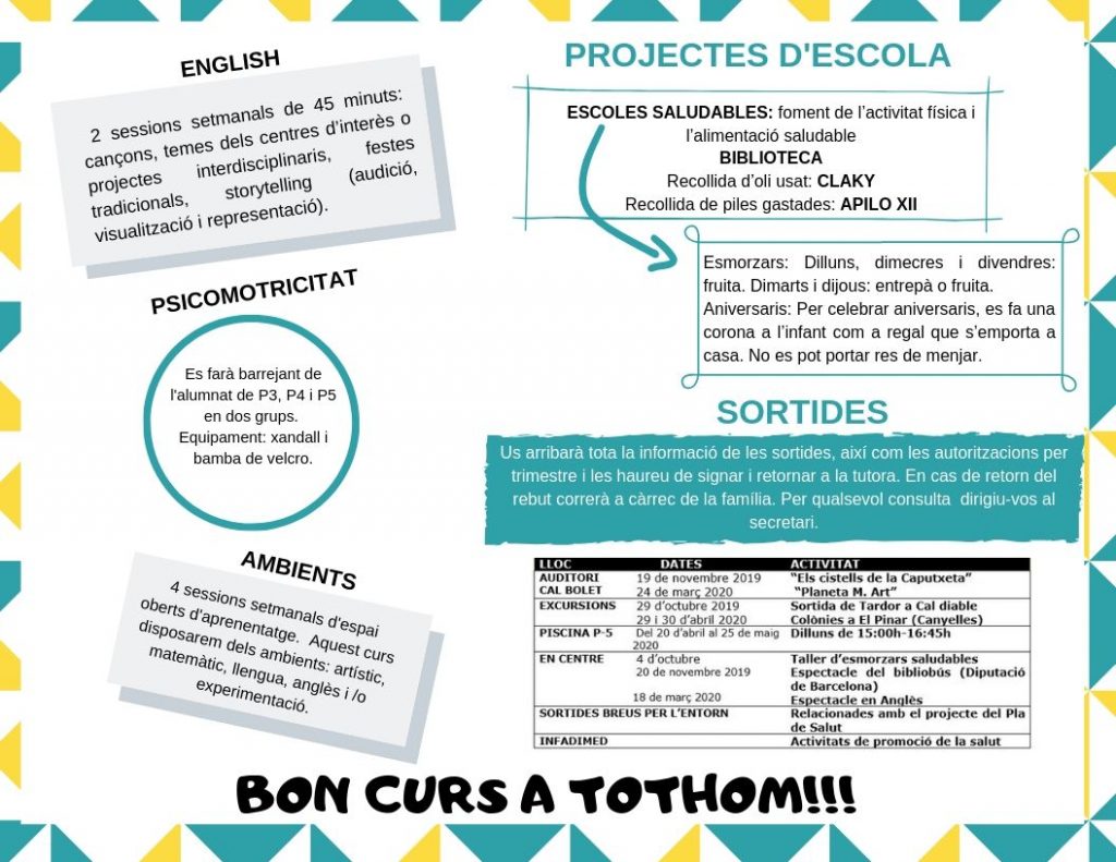 Triptic de la reunió d’inici de curs d’Educació infantil 2019-2020