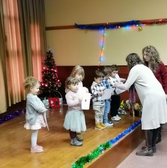 Cada dia a l’hora de l’esbarjo li vam donar de menjar…. I avui…. Quina sorpresa! Ens ha cagat a tots un regal!! Gràcies Tió, ens ha agradat molt tenir-te entre nosaltres.