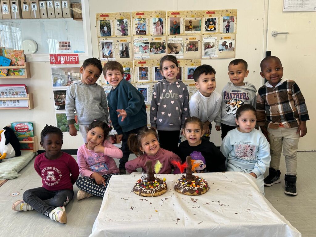 Al llarg del matí, cada classe es va convertir en un petit obrador de pastisseria. Els nens i nenes, amb molta il·lusió i ganes de participar, van elaborar la seva pròpia mona de Pasqua. La base era un deliciós pa de pessic que van recobrir amb Nocilla, i que després van decorar amb ous de xocolata i lacasitos.