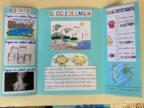 Els nens i nenes de la classe de 2n de primària hem fet un projecte sobre l’aigua a la Terra. Hem après moltes coses, com: la importància que té a les nostres vides, el cicle de l’aigua, els estats i maneres d’estalviar-ne. L’hem finalitzat amb la creació d’un lapbook.