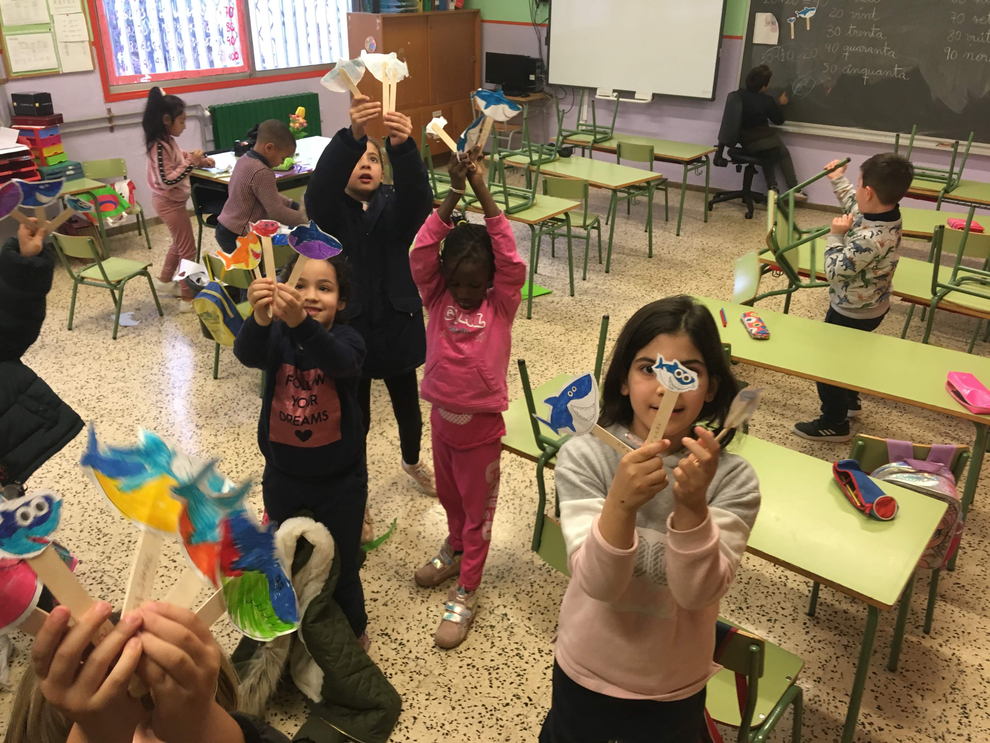 A la classe de primer hem aprofitat la cançó del baby shark per a treballar la family!! Han fet una manualitat molt divertida per a practicar i jugar a casa amb : baby shark, mummy shark, daddy shark, granny shark and grandad shark. All of them are hungry!!!! Be carefull little fish!!!