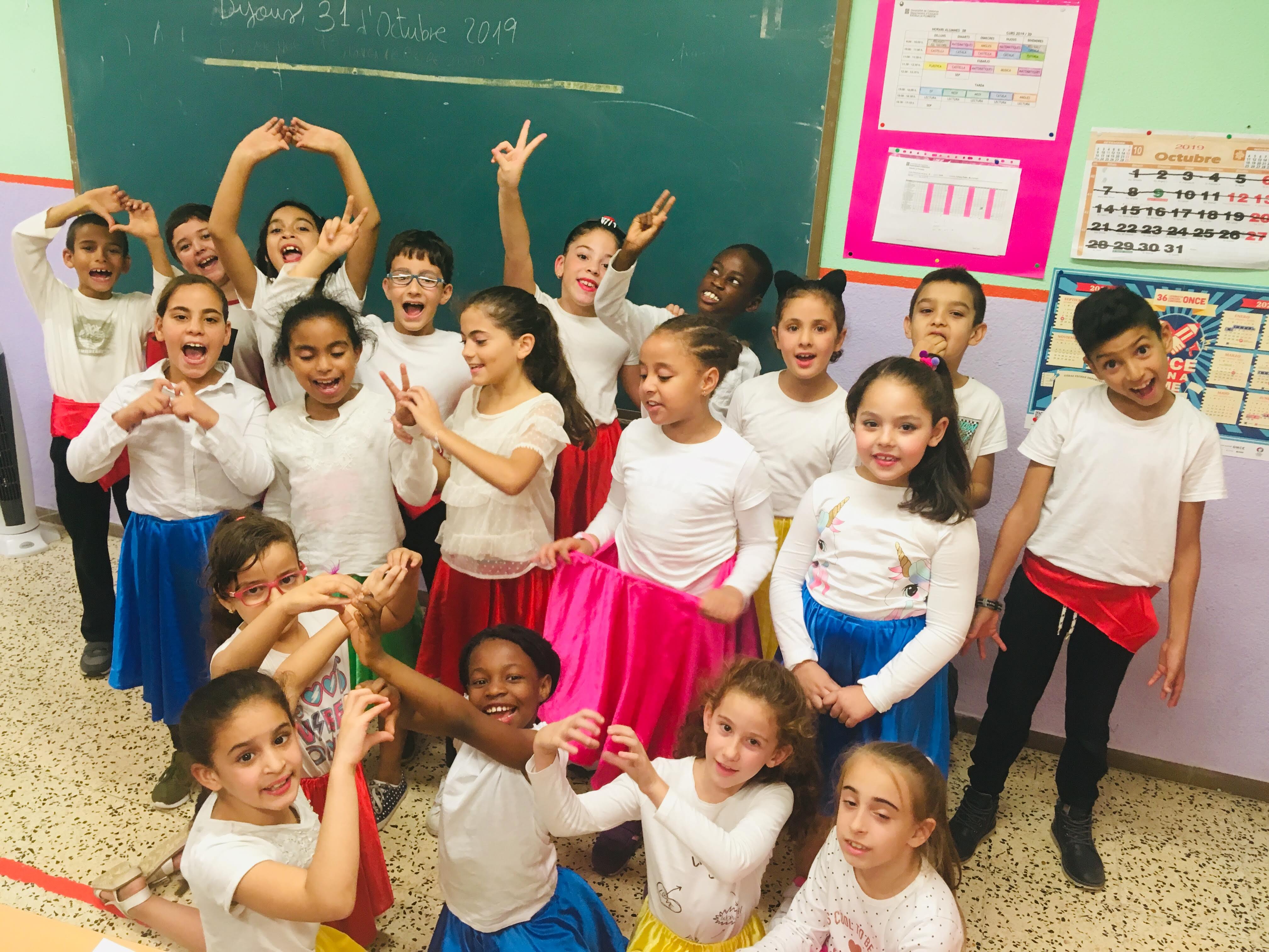Aquest trimestre vam celebrar la Castanyada i a part de menjar castanyes i cantar i ballar al pati la mar de bé, també vam escriure una redacció sobre aquest dia de celebració, la qual va anar acompanyada d’una d’aquestes fotografies. No trobeu que fan molt de goig?!?!?