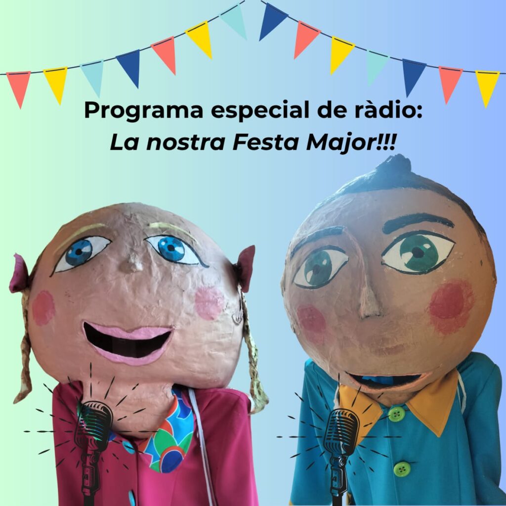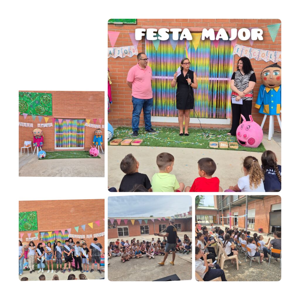 Avui dilluns 2 de juny hem donat el tret de sortida a la nostra 1era Festa Major de l’Escola. A les 11h ens hem reunit tota l’escola per escoltar el Pregó amb la presència de les autoritats el Sr. Miguel Ángel Almansa regidor de La Plana i la Puchi, la nostra pregonera major, que ens ha preparat un gran discurs! L’alumnat de 6è ha rebut les bandes de “Pubilles i Hereus” que lluiran durant tots els actes del Programa de Festes. L’alumnat de Cicle Inicial ens ha preparat un programa de ràdio on ens parla sobre què és una Festa Major i els seus principals elements.