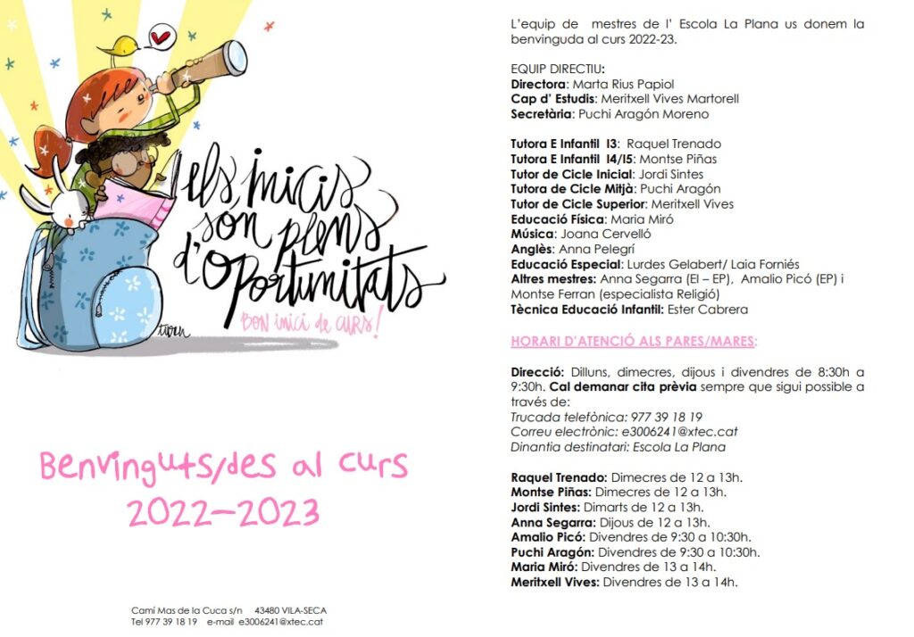 En cas que el vostre fill/a continui a l’Escola La Plana, més endavant us farem arribar la confirmació de plaça i ara NO CAL que feu res.