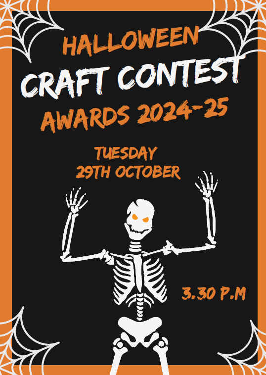 Benvolgudes famílies, Us convidem el 29 d’octubre a les 15:30 h a l’entrega de premis del concurs de Halloween de treballs manuals en família.