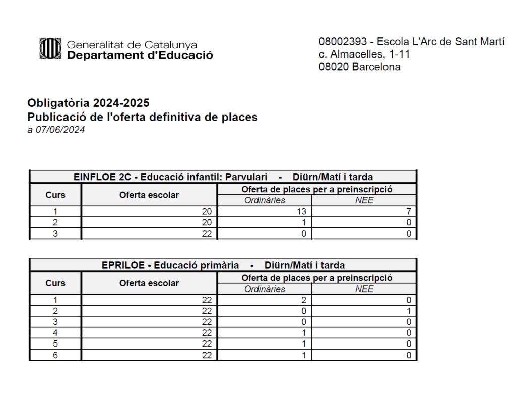 PUBLICACIÓ DE L’OFERTA DEFINITIVA DE PLACES 2024-2025 Feu un comentari / Per admin / 7 de juny de 2024 / Infantil Portada Primària