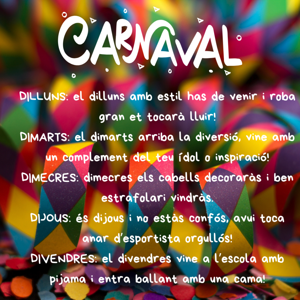 Una setmana en què destaca les activitats de discoteca carnavalera, les menges de Dijous Gras i els Tallers de Carnestoltes de divendres a la tarda.