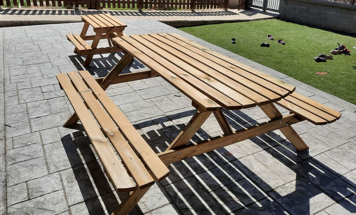 Ens feien una doble demanda, ens demanaven fer el disseny d’una jardinera que s’ha d’instal·lar a la zona de l’espai mediterrani i fer el muntatge de les taules de pícnic que havia comprat l’escola per crear un espai de jocs de taula a l’estona del pati a l’exterior de la biblioteca.