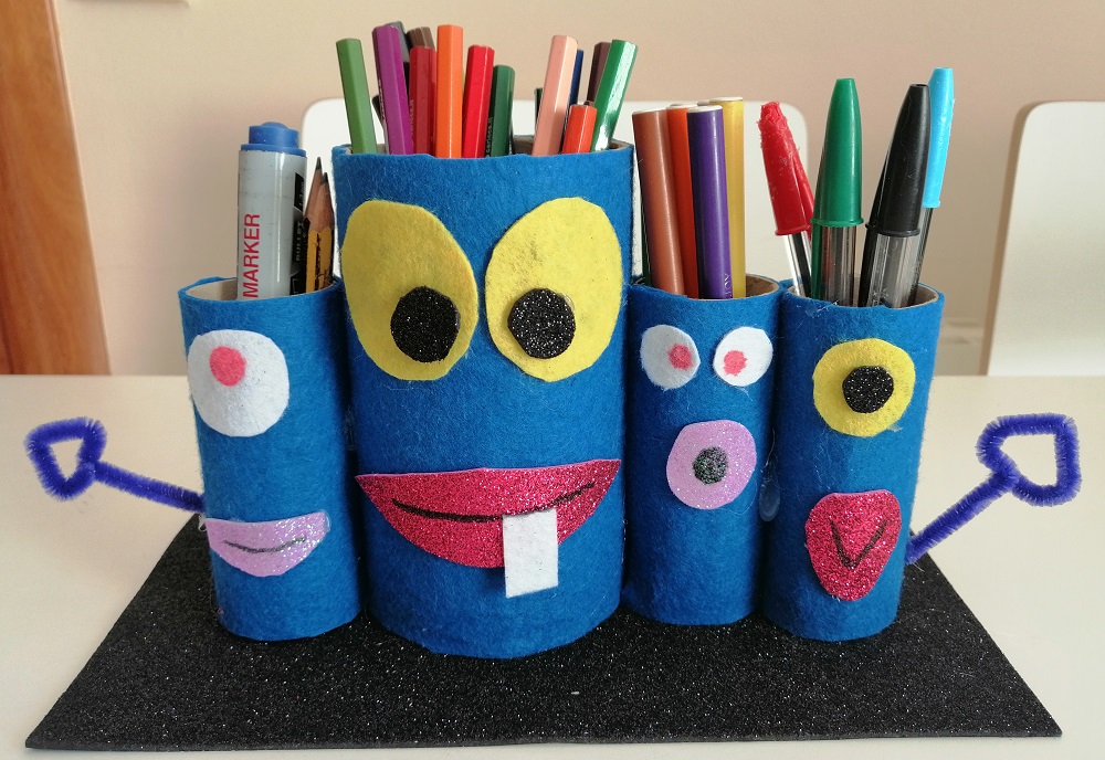 Durant el confinament hem fet moltes activitats artístiques. Una d’elles, va consistir en crear un portallapis donant un segon ús a un/uns porta rotllos de paper de WC.