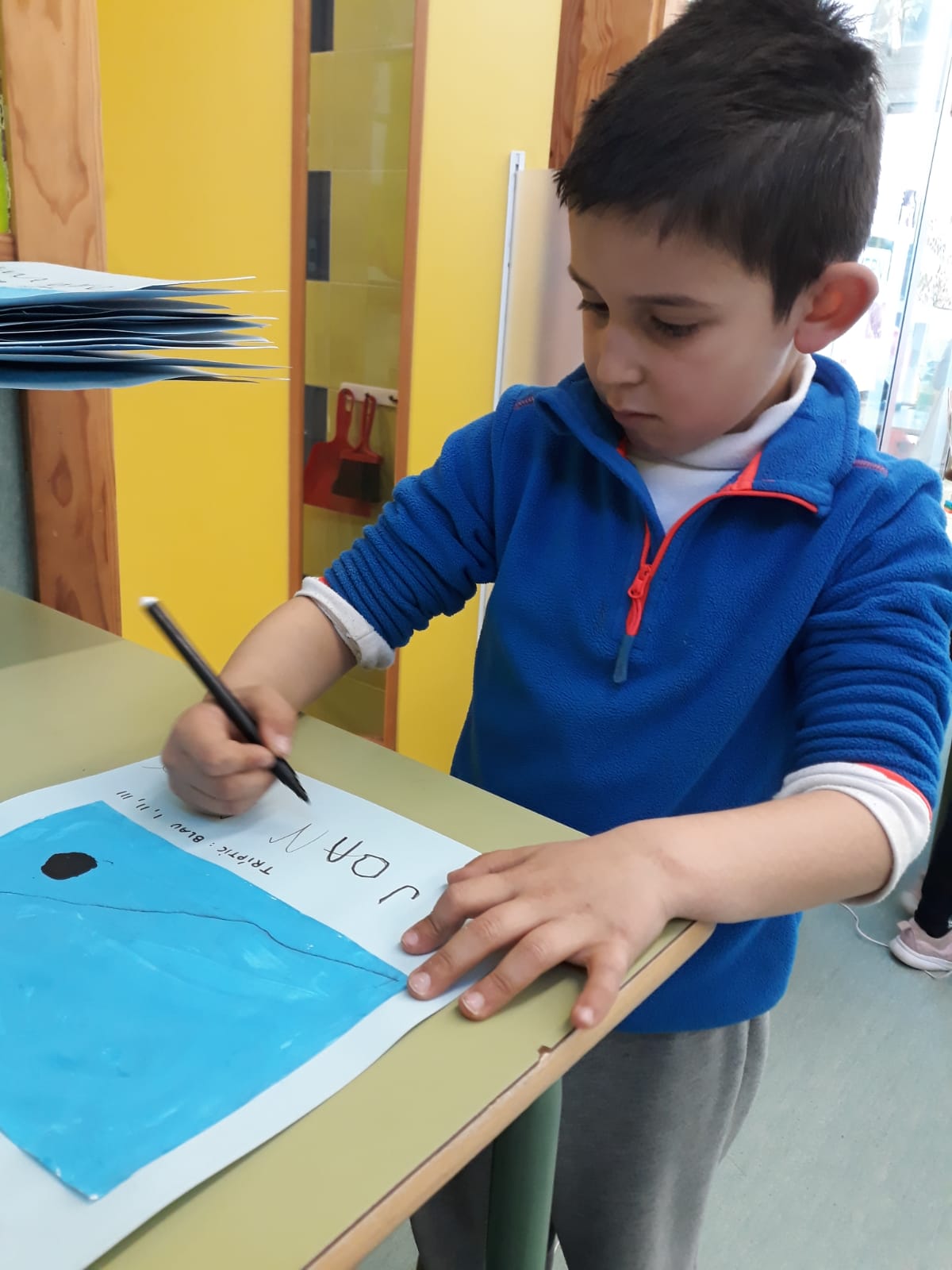 A P4 TREBALLEM L’ARTISTA JOAN MIRÓ Feu un comentari / Per Escola / 22 de març de 2021 / General Infantil P4 Portada Sortides i activitats Els nens i nenes de P4 hem treballat el tríptic Blau I, Blau II i Blau III del pintor Joan Miró. Hem vist com pinta amb diferents colors, formes, textures… i hem decidit que també volem ser artistes: Com Joan Miró!!!