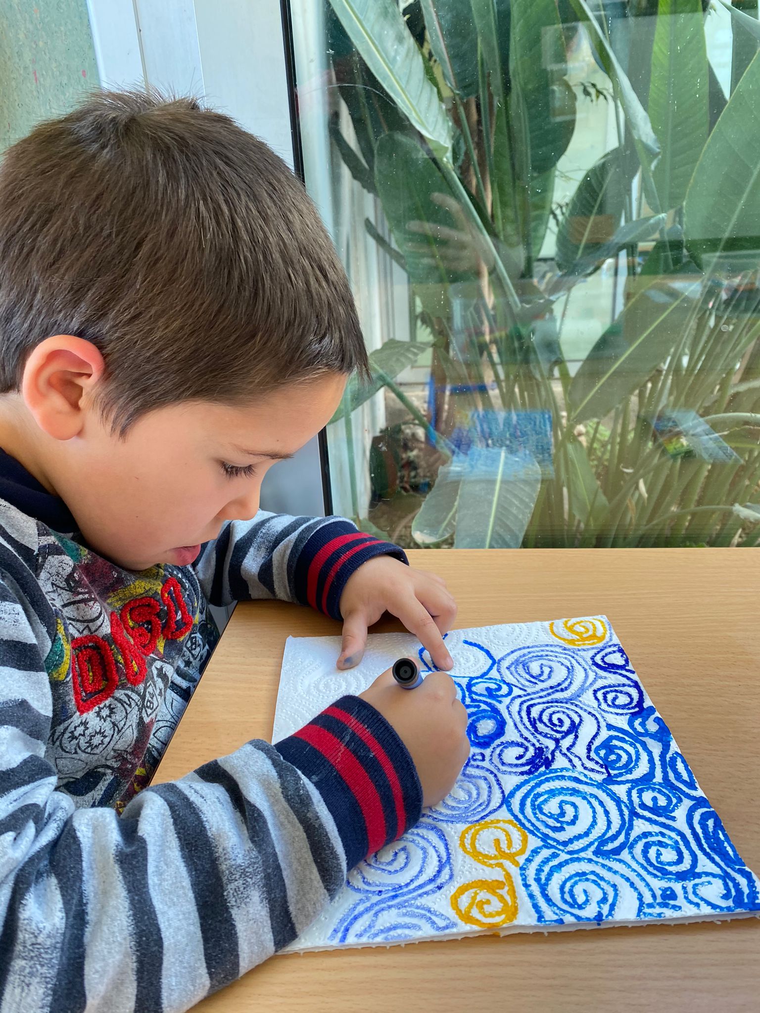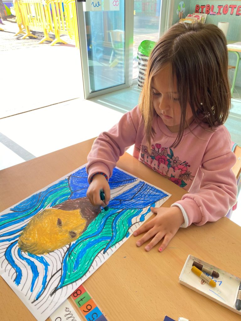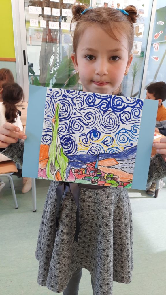 Als nens i nenes de P5 ens agrada molt l’art, sobretot pintar; per això hem triat un pintor que ens encanta: Vincent Van Gogh. Hem après moltes coses d’ell, de la seva vida, la seva tècnica… però el que més ens ha agradat és intentar reproduir alguns quadres del pintor; com La nit estelada, Els gira-sols i el seu Autoretrat.