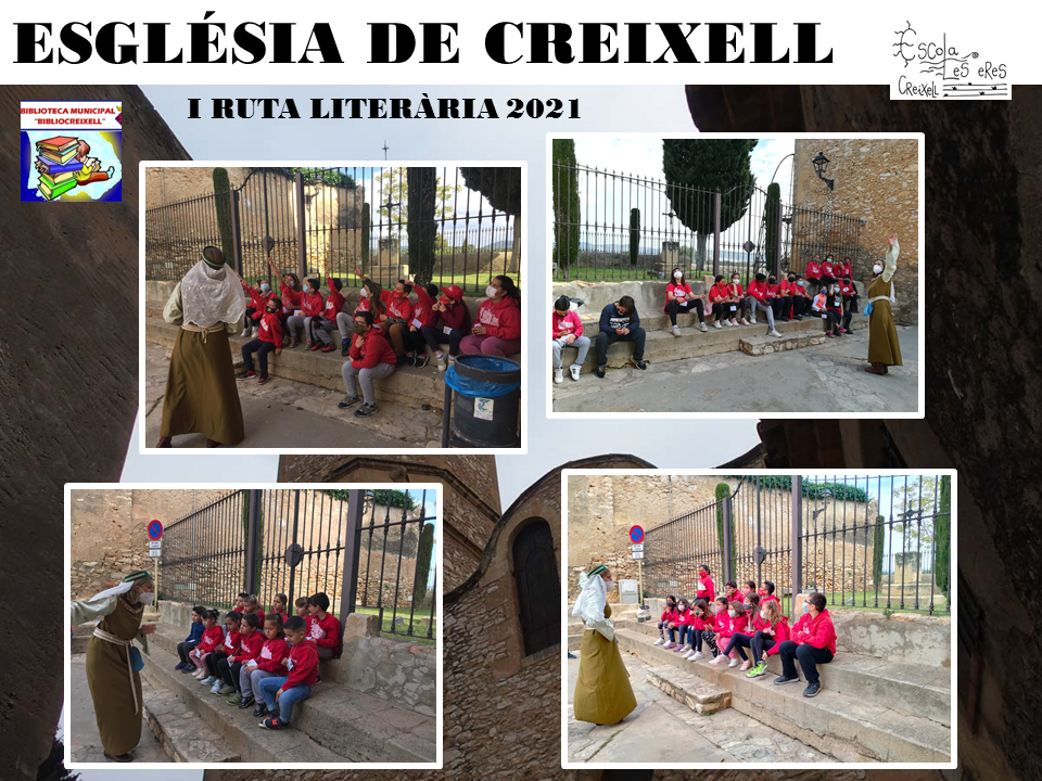 Avui, amb la resta de grups hem celebrat la I RUTA LITERÀRIA per tres espais de la Vila de Creixell. Tres contacontes ens esperaven a CAL CABALER, al CASTELL DE CREIXELL i a l’ESGLÉSIA DE CREIXELL. Ens han explicat una llegenda de Sant Jordi molt original en tres espais immillorables. Ens ha agradat moltíssim! Moltíssimes gràcies, BIBLIOCREIXELL! VISCA LA I RUTA LITERÀRIA!
