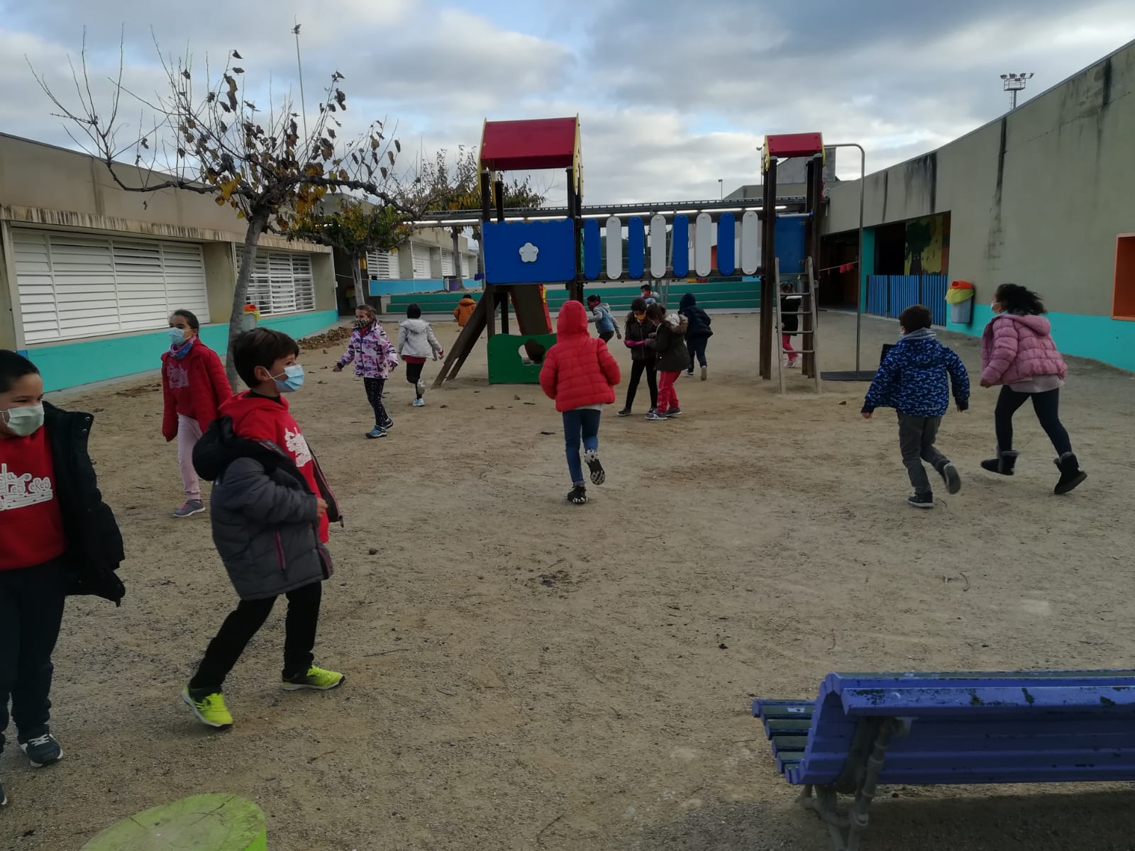 Ara el tenim a l’entrada de l’escola per tal que tot l’alumnat d’educació primària li pugui posar una mica de menjar, així esperem que agafi forces i ens cagui molts regalets abans de marxar de vacances de Nadal.