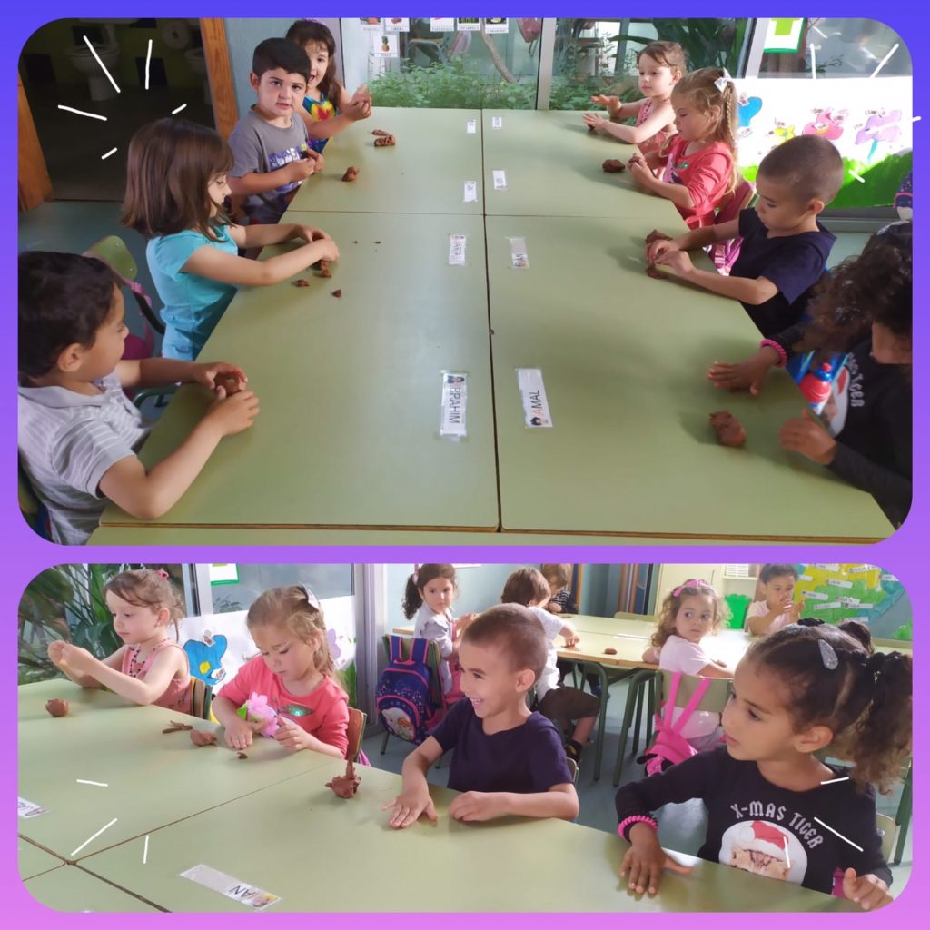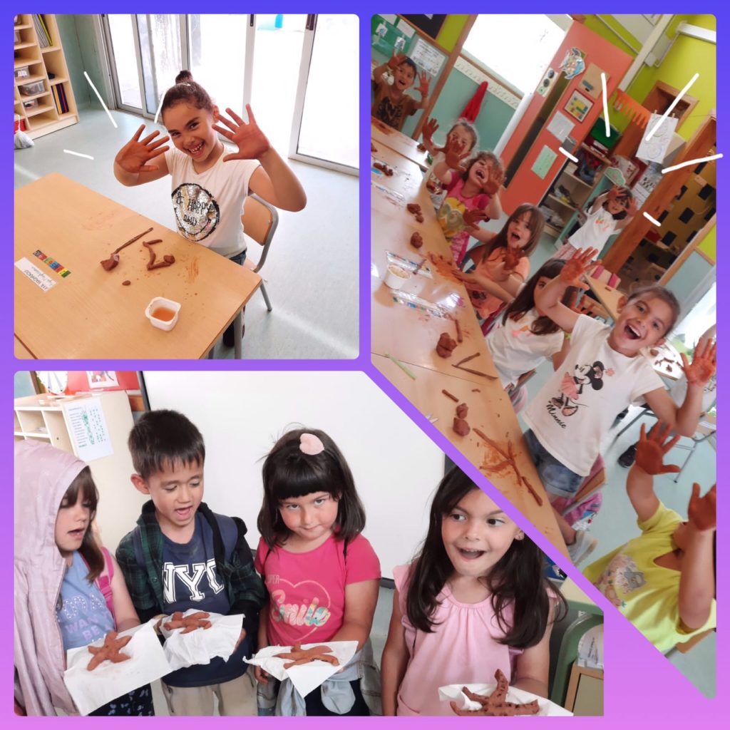 Aquesta setmana amb els més petits de l’escola hem treballat el fang. Per molts d’ells ha sigut la primera vegada que l’han tocat.