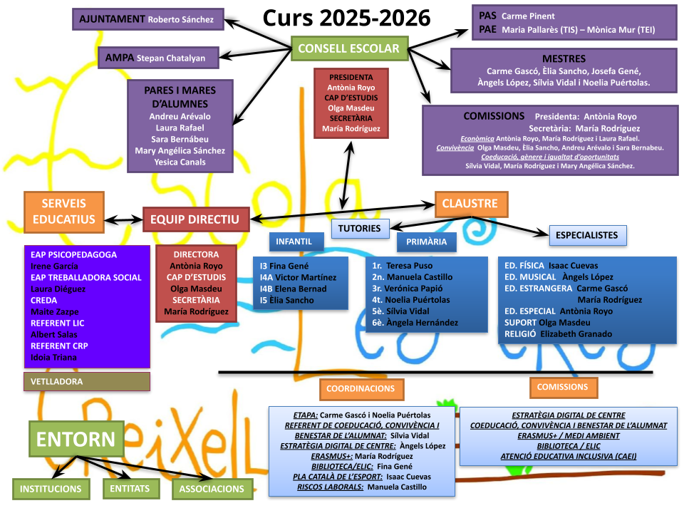 Actualment és una escola que està evolucionant cap a 1 línia. L’educació infantil té 4 grups: i3, i4A, i4B i i5, i l’educació primària, té 8 grups, 1r, 2n A, 2n B, 3r, 4t, 5è i 6è.